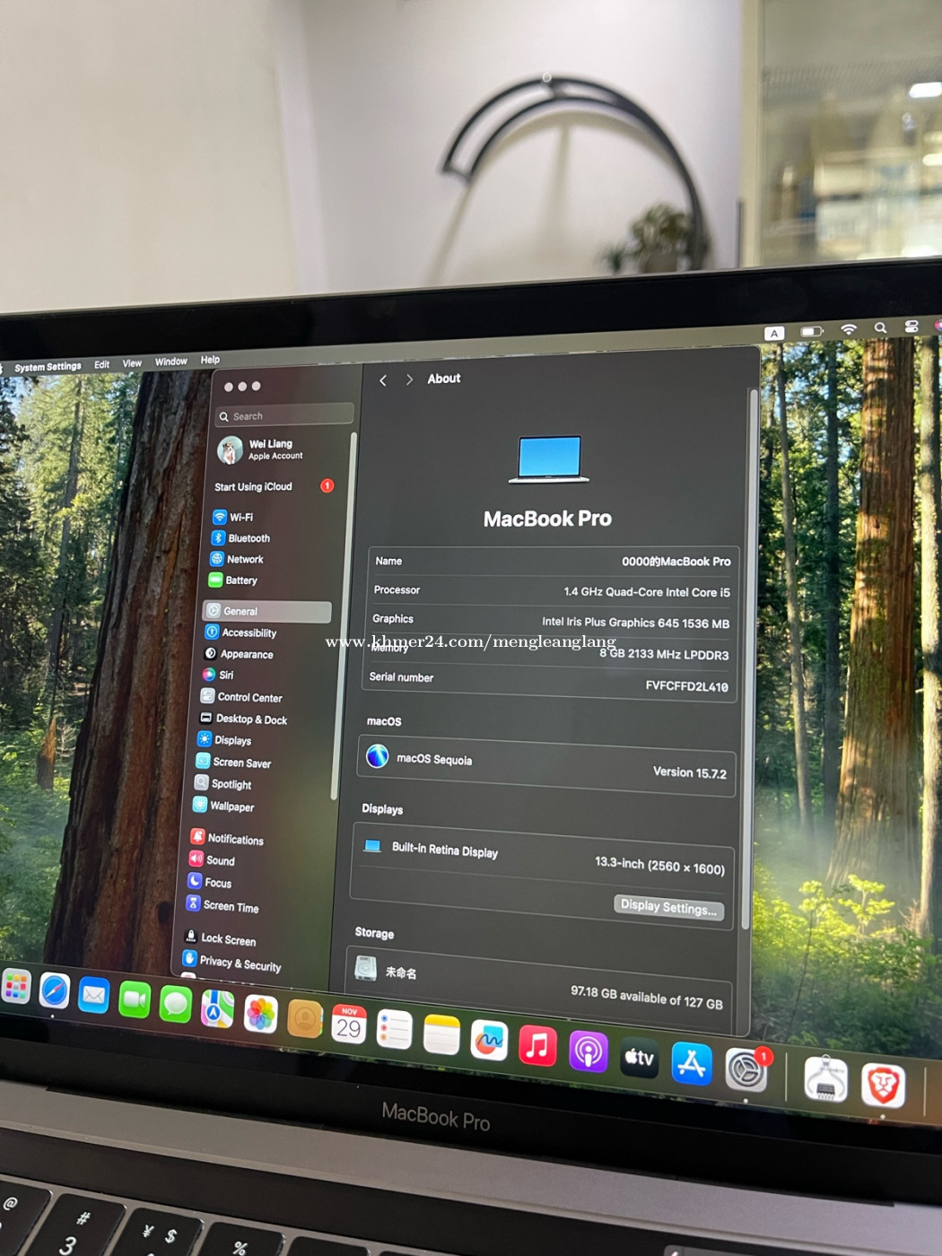 Macbook pro 2019 13.3inch Storage 256G RAM 8GB Condition 98.9% Free mouse and charger ធានា ១៤ថ្ងៃ Free ដឹក📦🚚