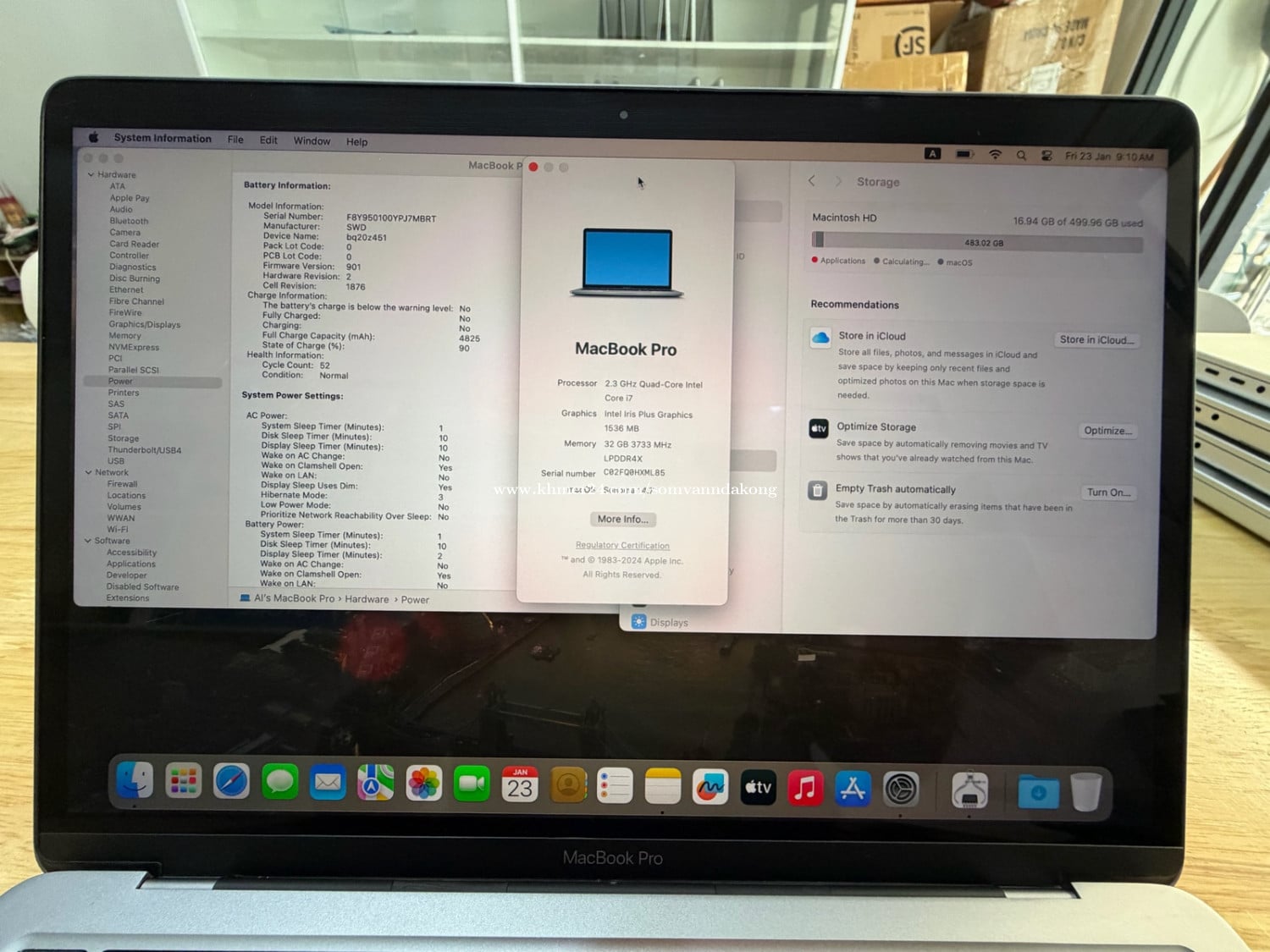 MacBook Pro 2020 13” CPU: Core i7 Ram: 32G Storage: 512G Battery: 90%+ Appearance: 99% អត់មានស្នាមទេ Original Charger 67W + Cable Type C Warranty 1 month Free bag Free screen protector Free Bluetooth mouse Free software installation
