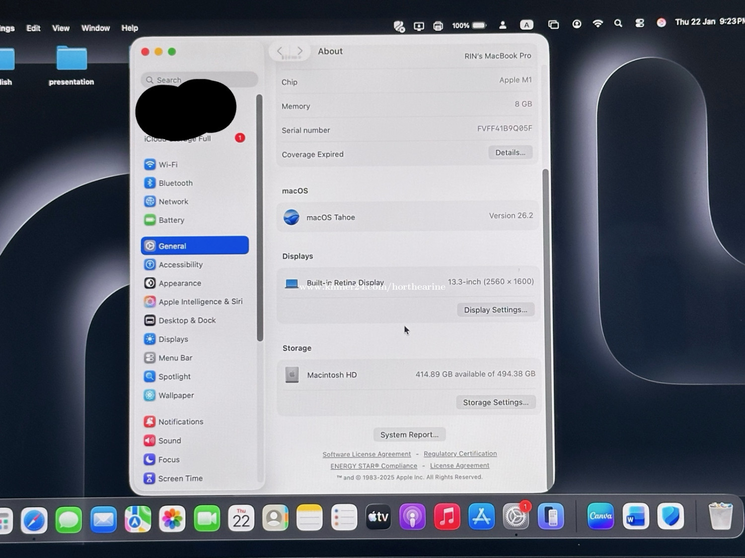 MacBook Pro M1 chip 13 inch Ram 8BG storage 512G
