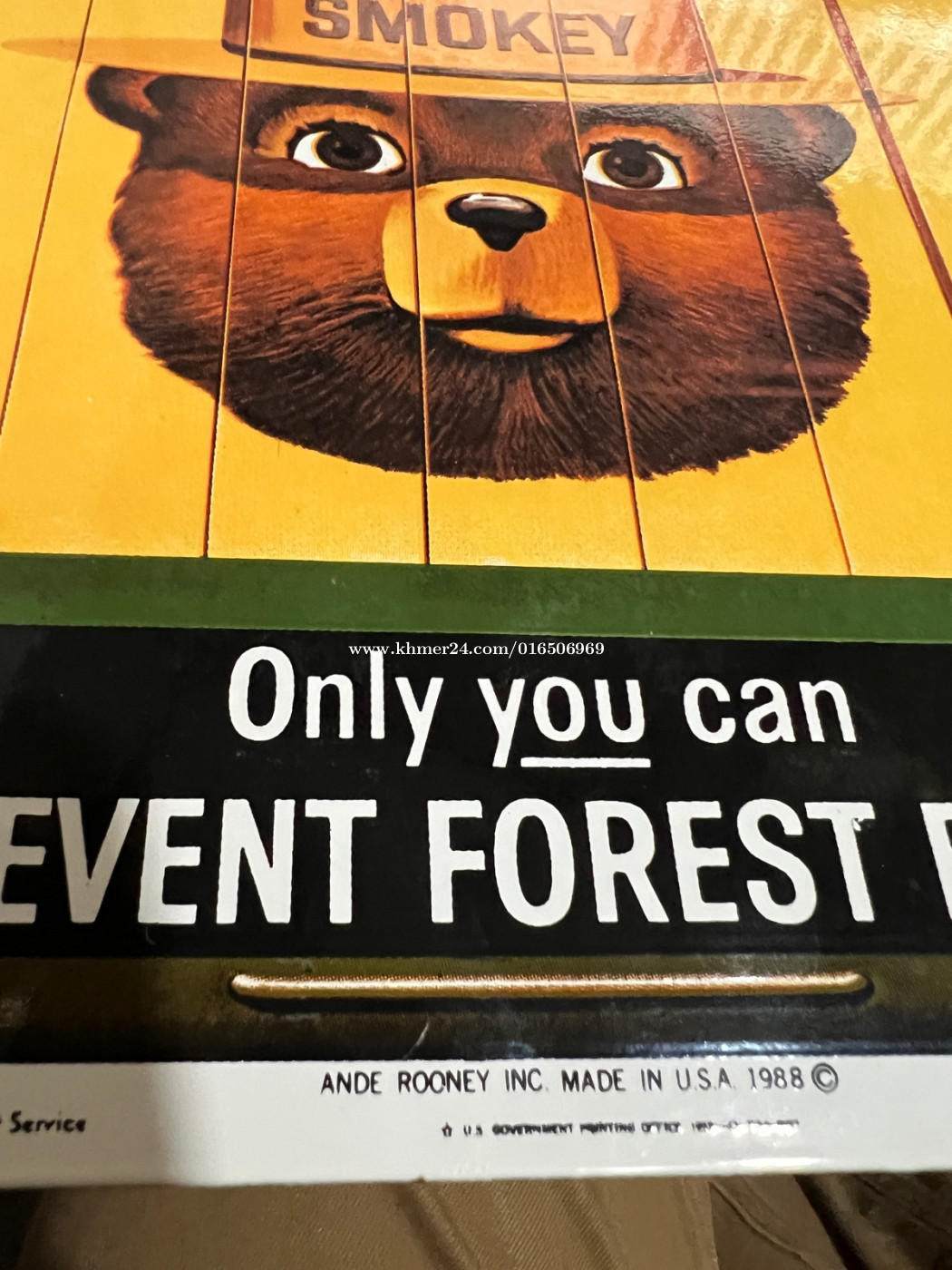 Made in USA 1988 Smokey Bear Porcelain Enamel Sign: Ande Rooney Vintage Advertising, 1988