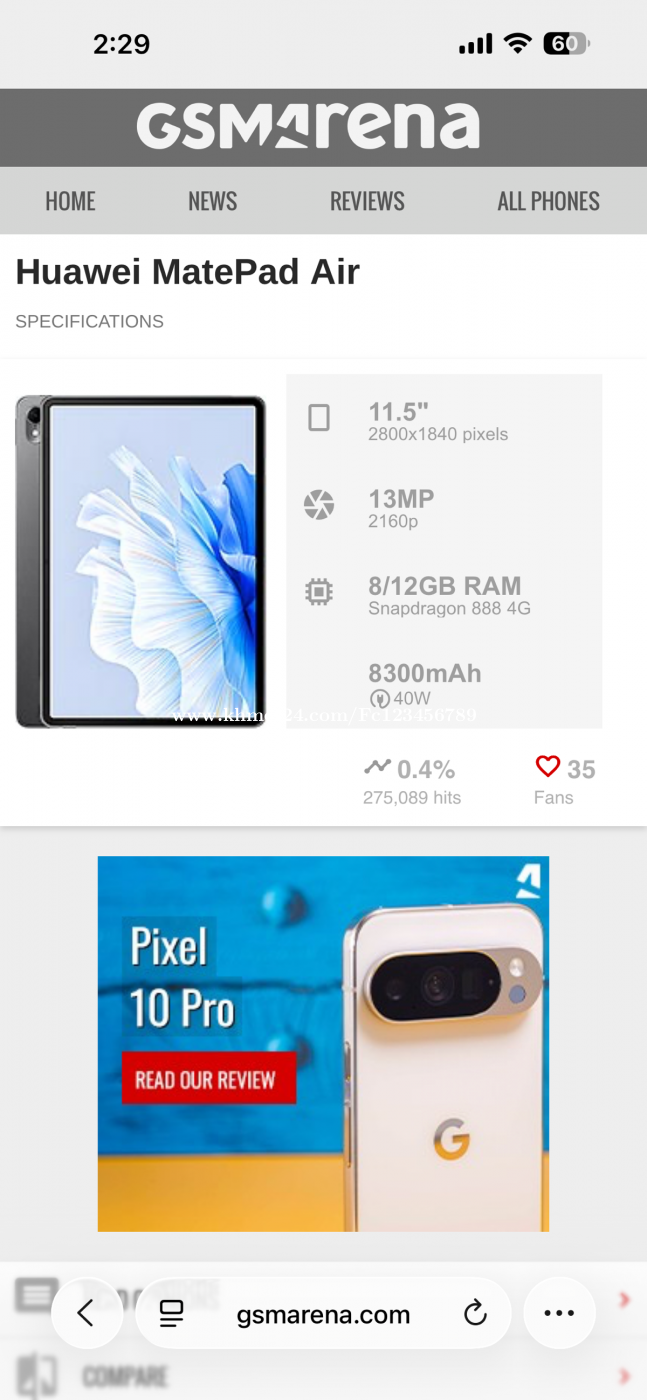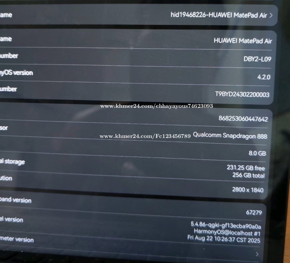 Matpad air CH Ram8g memory 256g