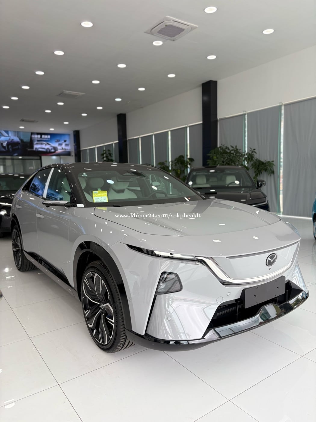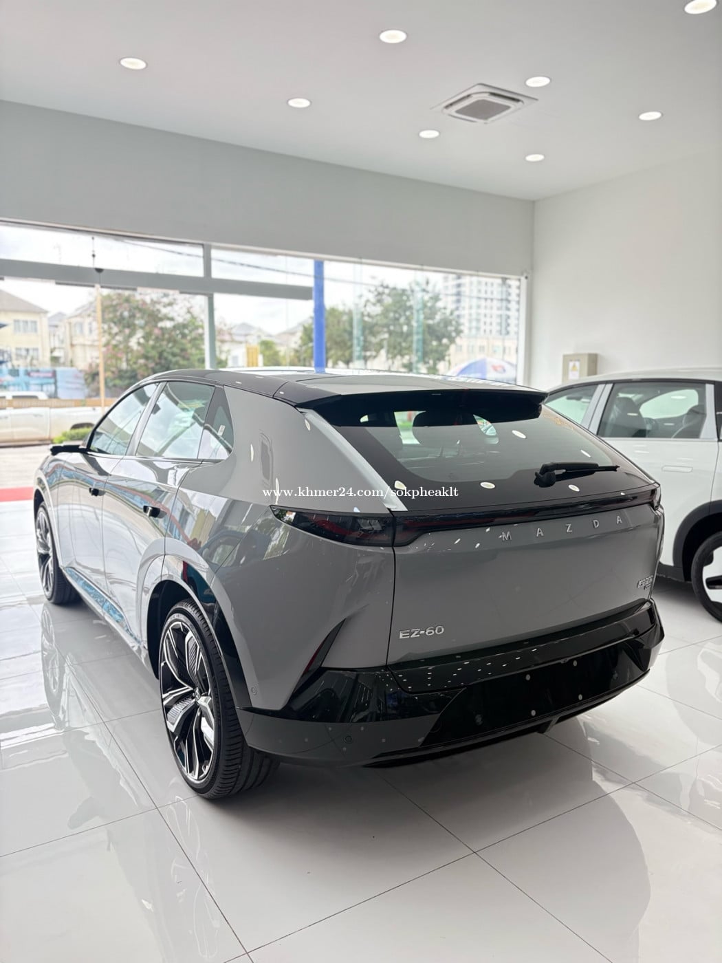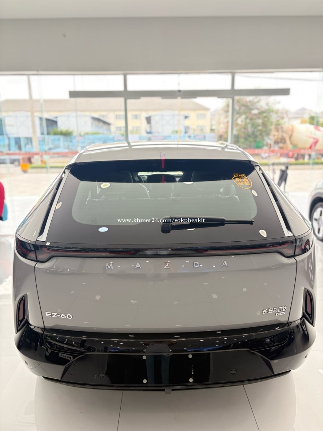 Mazda EZ60 600km Max កំលាំងសេះសរុប 电动机总马力:258 Ps កំលាំងរមួលសរុប 电动机总扭矩:290 N•m កំលាំងម៉ូទ័ក្រោយ 后电机最大马力:190Ps កំលាំងរមួលម៉ូទ័រក្រោយ 后电机最大扭矩:290 N•m សន្ទុះពីល្បឿន0-100 0—100km/h:7.9s ល្បឿនអតិបរមា 最高车速:185 km/h រត់បានរយ:ចំងាយ CLTC纯电续航:600 km ទំហំអាគុយ 电池容量:77.94kWh ស៊ីភ្លេីងក្នុង100km 百公里耗电量:14.7kWh/100km រយះពេលសាកលឿន 快充时间:0.25小时 ខ្នាតរថយន្ត尺寸:4850×1935×1620mm ធ្វេីចលនាដោយប៉ុងមួយ 驱动方式:2驱 ធានា质保:3ឆ្នាំ年或10ម៉ឺនគីឡូម៉ែត万公里