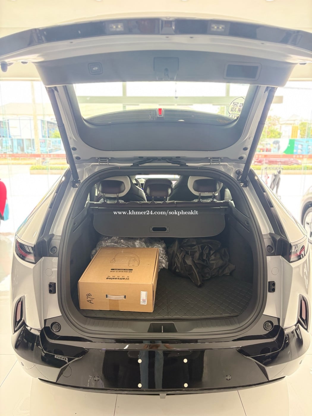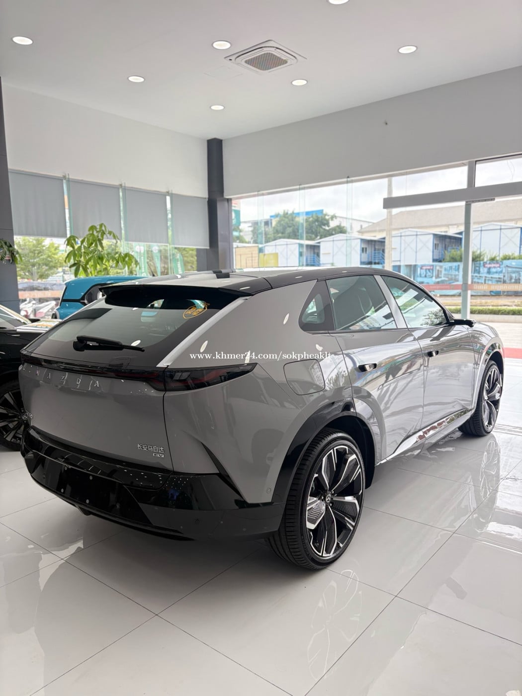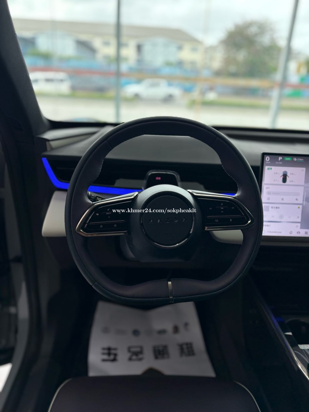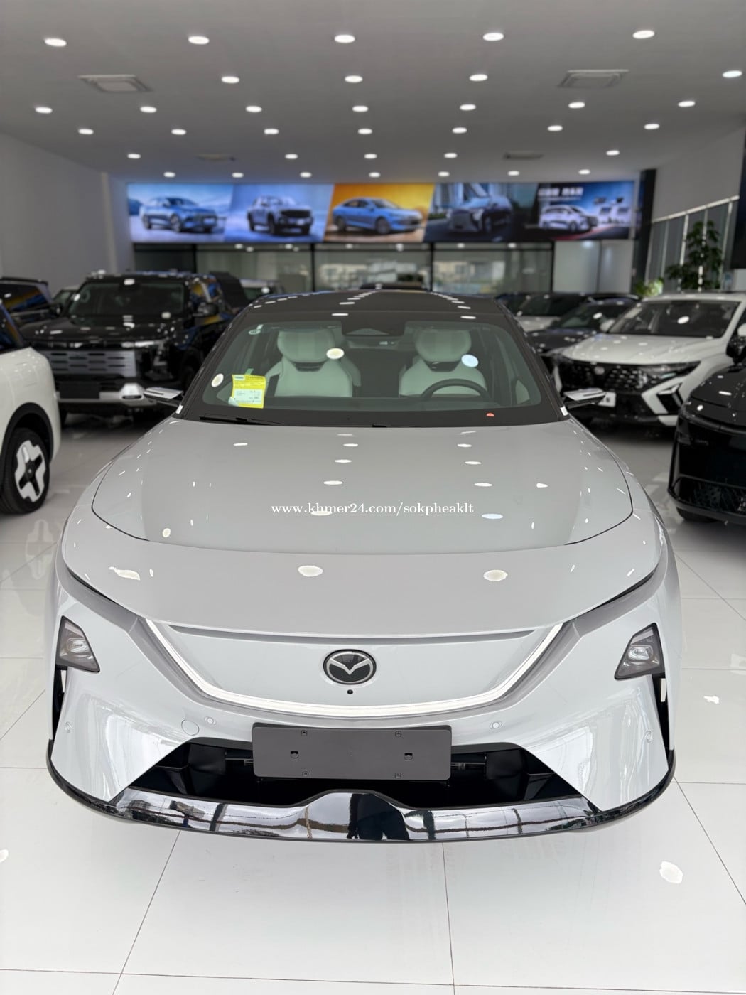 Mazda EZ60 600km Max កំលាំងសេះសរុប 电动机总马力:258 Ps កំលាំងរមួលសរុប 电动机总扭矩:290 N•m កំលាំងម៉ូទ័ក្រោយ 后电机最大马力:190Ps កំលាំងរមួលម៉ូទ័រក្រោយ 后电机最大扭矩:290 N•m សន្ទុះពីល្បឿន0-100 0—100km/h:7.9s ល្បឿនអតិបរមា 最高车速:185 km/h រត់បានរយ:ចំងាយ CLTC纯电续航:600 km ទំហំអាគុយ 电池容量:77.94kWh ស៊ីភ្លេីងក្នុង100km 百公里耗电量:14.7kWh/100km រយះពេលសាកលឿន 快充时间:0.25小时 ខ្នាតរថយន្ត尺寸:4850×1935×1620mm ធ្វេីចលនាដោយប៉ុងមួយ 驱动方式:2驱 ធានា质保:3ឆ្នាំ年或10ម៉ឺនគីឡូម៉ែត万公里