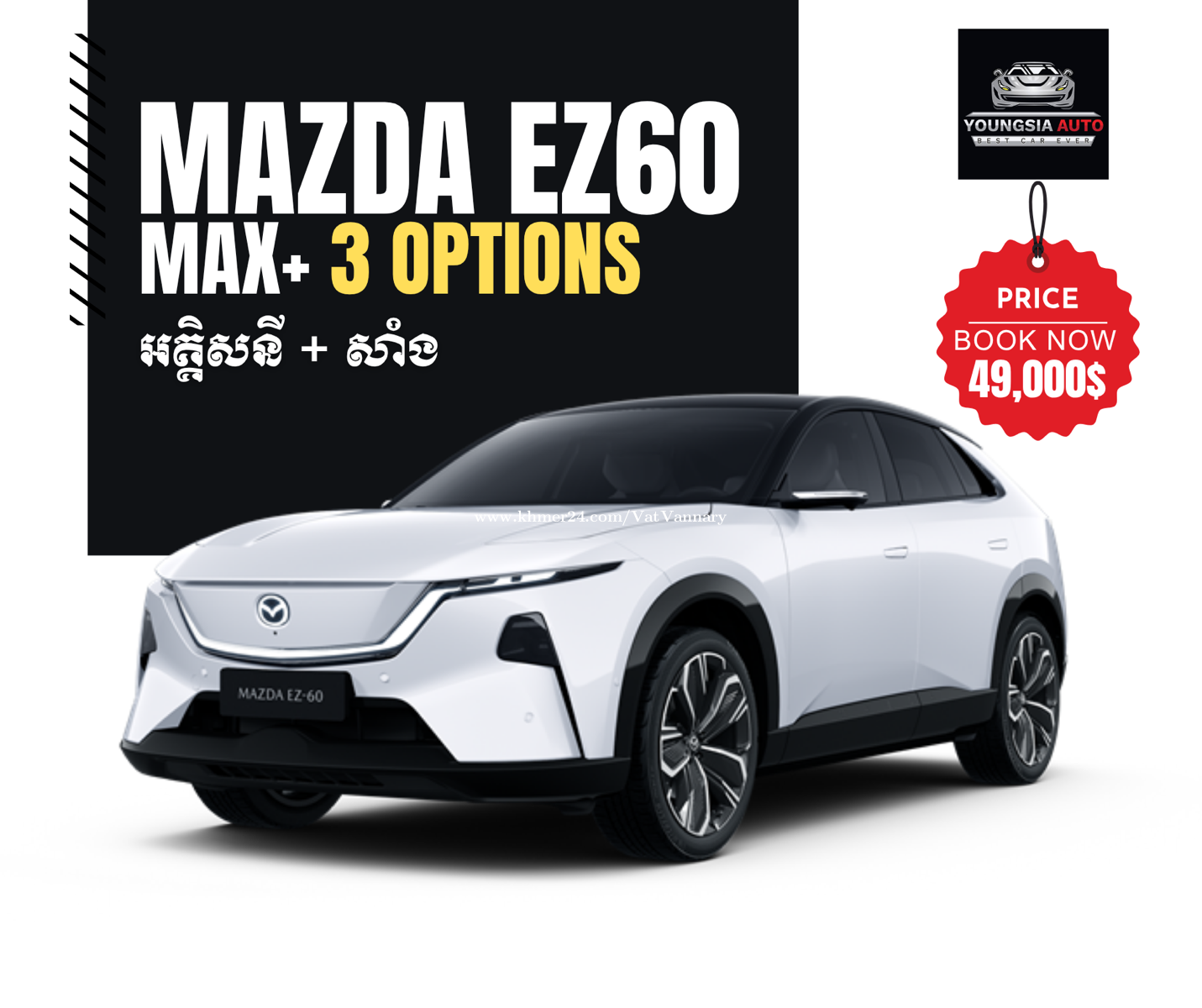 Mazda EZ60 អគ្គិសនីលាយសាំង បូកបន្ថែមOptions 3ពិសេសៗបន្ថែម តម្លៃ49000$😍 មាន3ជម្រើសពណ៌ : ស , ប្រផេះ , ស្វាយ (ផ្នែកខាងក្នុងស្វាយ) 📥 សម្រាប់ព័ត៌មាន បន្ថែម៖ Telegram: t.me/YSA_Vannary ☎️ 0762270xxxClick To Call 🏢 ទីតាំង Showroom: https://maps.app.goo.gl/eEGnNioRZBCEQkhg7?g_st=it អគារ #315 ផ្លូវ182 សង្កាត់ទឹកល្អក់2 ខណ្ឌទួលគោក រាជធានីភ្នំពេញ