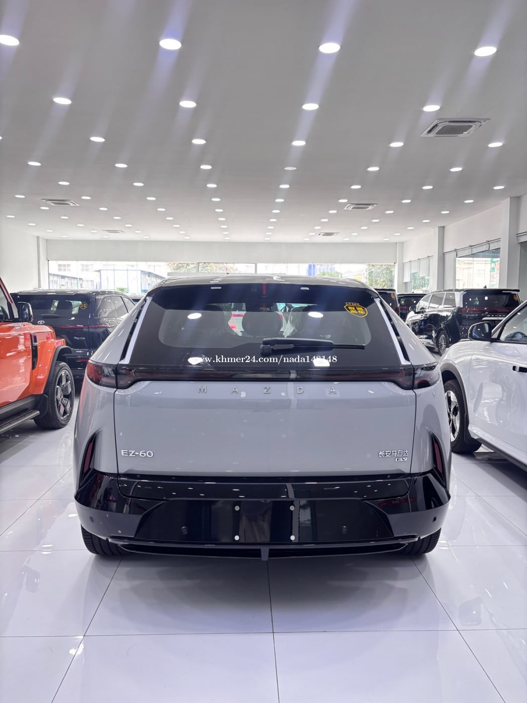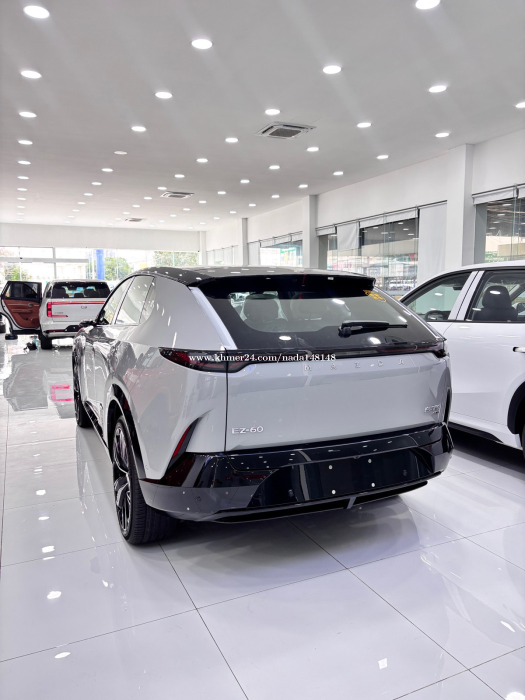 Mazda EZ60 600km Max កំលាំងសេះសរុប258 Ps កំលាំងរមួលសរុប290 N•m កំលាំងម៉ូទ័ក្រោយ190Ps កំលាំងរមួលម៉ូទ័រក្រោយ290 N•m សន្ទុះពីល្បឿន0-100 0—100km/h:7.9s ល្បឿនអតិបរមា185 km/h រត់បានរយ:ចំងាយ CLTC600 km ទំហំអាគុយ77.94kWh ស៊ីភ្លេីងក្នុង100km14.7kWh/100km រយះពេលសាកលឿន0.25 ខ្នាតរថយន្ត 4850×1935×1620mm ធ្វេីចលនាដោយប៉ុងមួយ 1 ធានា 3ឆ្នាំ10ម៉ឺនគីឡូម៉ែត