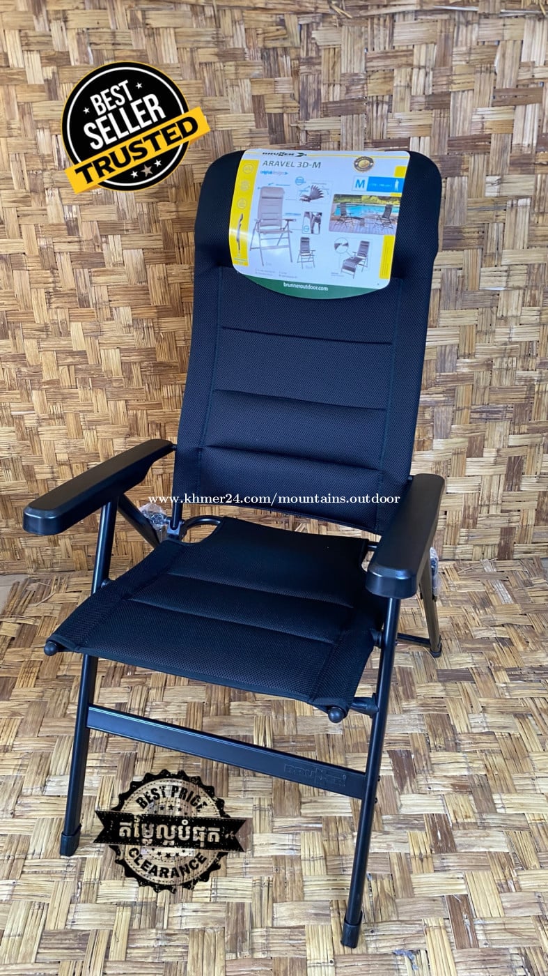 កៅអីបត់ខ្នាតកណ្តាល ធានាស្រួលអង្គុយ សាច់កៅអីប្រភេទ 3D mesh polyester មានសភាពទន់ មិនហប់ខ្យល់-medium camping chair recliner BRUNNER ARAVEL 3D-M ————————————————————— *Contact:0966381xxxClick To Call/https://t.me/mountains_outdoor *Address:Borey Sorlar, 7A Street 371, Phnom Penh