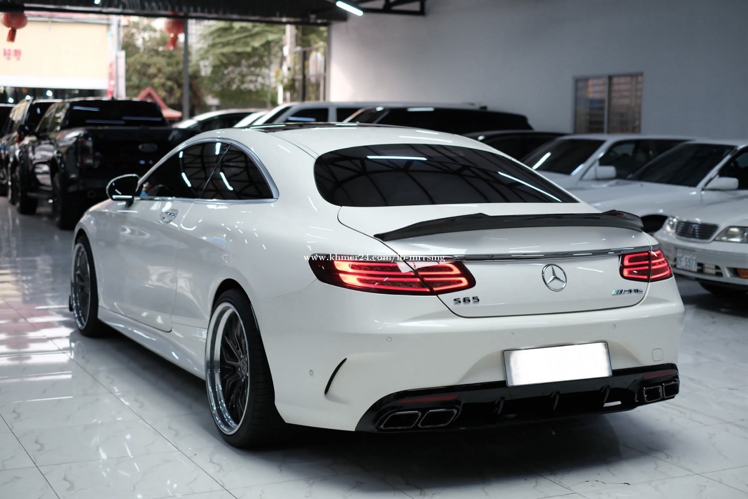 ម៉ាកឡាន : MERCEDES S450 Coupe up S63 ពណ៍ខាងក្រៅ : ស (white) ពណ៍ខាងក្នុង : ដោះគោ ឆ្នាំឡាន : 2018 ម៉ាសុីន : V6 3.0L TwinPower Turbo (370hp) Option : FULL OPTION -យ៉ាន់រង្វង់ 21 Forged សំបកថ្មី -កៅអីចុចសងខាង ( ពូកកម្ដៅត្រជាក់ ) -បាស់ ប្រភេទ (Burmester) -Sensor មុខក្រោយ -Camera360 - Eco,Sport,Sport+ -អេក្រង់ធំ -ដំបូលបើក (កញ្ចក់ធំ) SUNROOF -ធានាម៉ាសុីននឹងប្រអប់លេខ ឡានស្អាតទឹមតែជិះបាន6មុឺនគីឡូ (ហ្សុីនអត់ទម្លាក់) ឡានម្ចាស់ដើម តម្លៃ99500$$ចរចារបាន