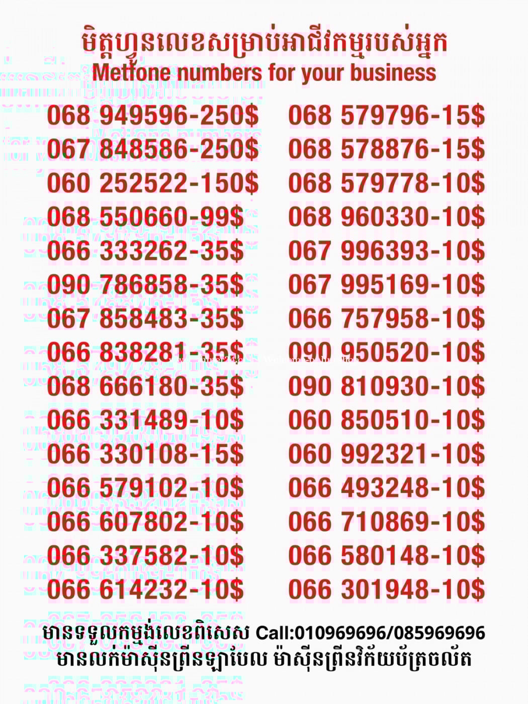 មានលក់លេខពិសេស មានទទួលកម្មង់លេខពិសេស មានលក់ម៉ាស៊ីនព្រីនឡាបែល មានលក់ម៉ាស៊ីនព្រីនវិក័យប័ត្រ មានលក់សម្ភារៈប្រើប្រាស់ក្នុងគ្រួសារ Smart Prime II 1=30$ Smart hero 1=40$ ទូរសព្ទថ្មីក្នុងប្រអប់ លក់ធូរៗរហូតអស់ពីស្តុក អាចប្រើជាឧបករណ៍សម្រាប់ស៊ែរ wifi បាន ទំនាក់ទំនង(ខ្មែរ | English | 中文):010969696 | 085969696 Telegram: https://t.me/W9696 Telegram group: https://t.me/konkonnada អាសយដ្ឋាន:ផ្ទះលេខ២៣ ផ្លូវបេតុងលេខ១ ភូមិទួលពង្រ សង្កាត់ចោមចៅ ខណ្ឌពោធិ៍សែនជ័យ រាជធានីភ្នំពេញ ទីតាំង https://goo.gl/maps/8moqW4iTHUfJEvWQ9 ដើម្បីស្វែងរកលេខអាជីវកម្មដែលលោកអ្នកពេញចិត្ត សូមចូលទៅកាន់:https://www.khmer24.com/Welcome-onlineshop
