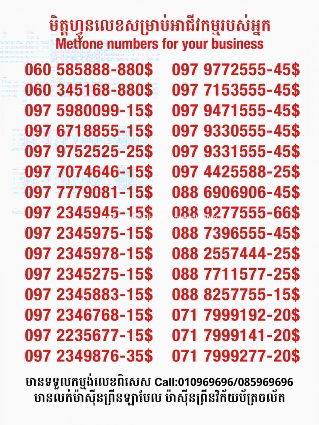 Metfone លេខសម្រាប់អាជីវកម្ម