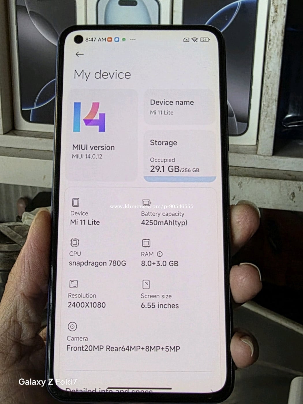 Mi 11lite sim2 china ram8g 256g ស្អាត97% ដំណើរការល្អទាំងអស់ only phone