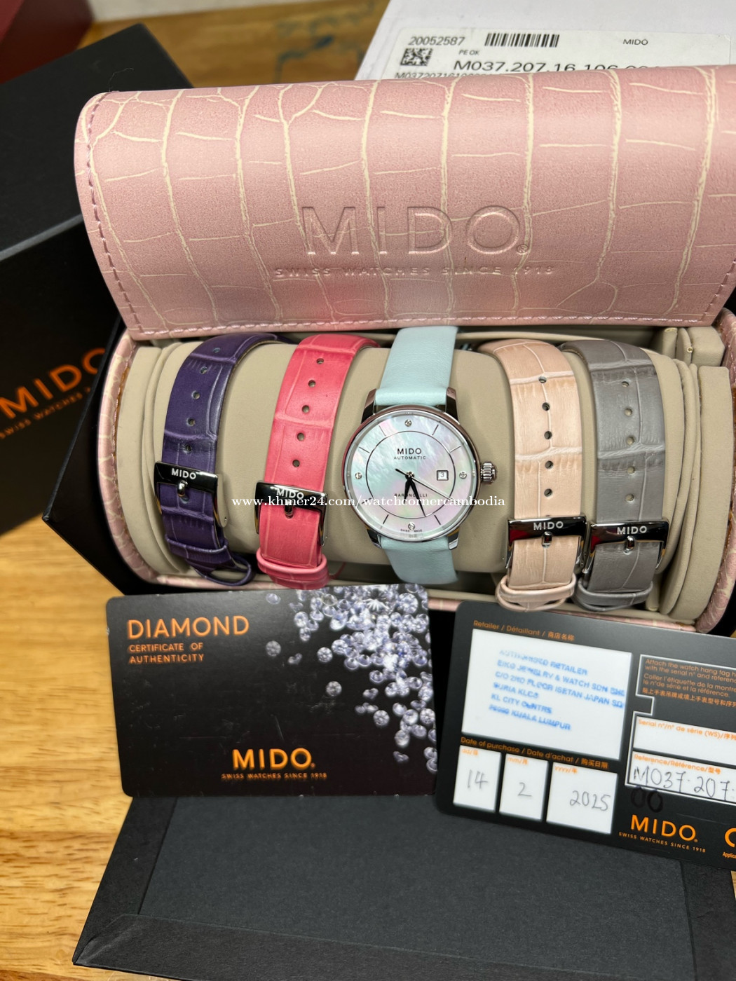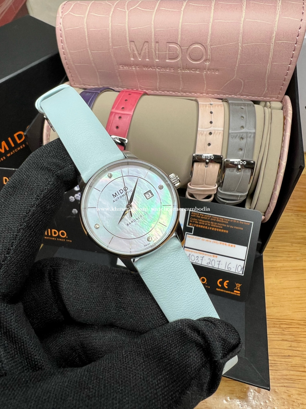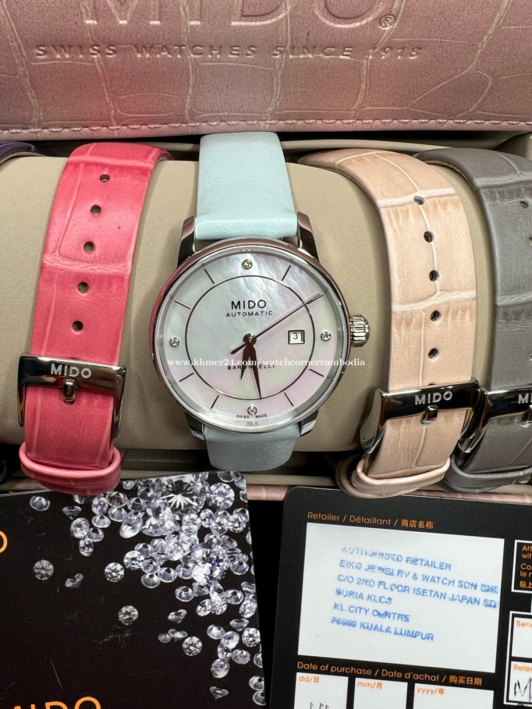 Mido Baroncelli Signature Lady Colours watch with a mother-of-pearl dial, diamond -condition new full set -delivery 25 province in Cambodia - 086 386838 [ telegram]