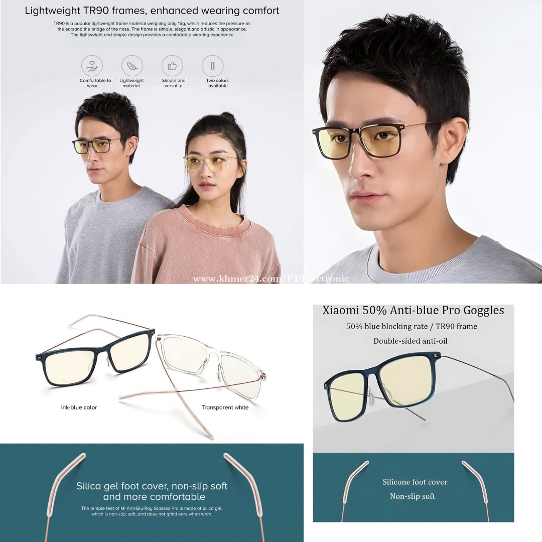 Mijia Blue Light Blocking Glasses Pro Blue ជាប្រភេទវ៉ែនតាប្រឆាំងពន្លឺពណ៌ខៀវ ដែលជួយការពារភ្នែកពីពន្លឺអេក្រង់ទូរស័ព្ទ ឬកុំព្យូទ័រ