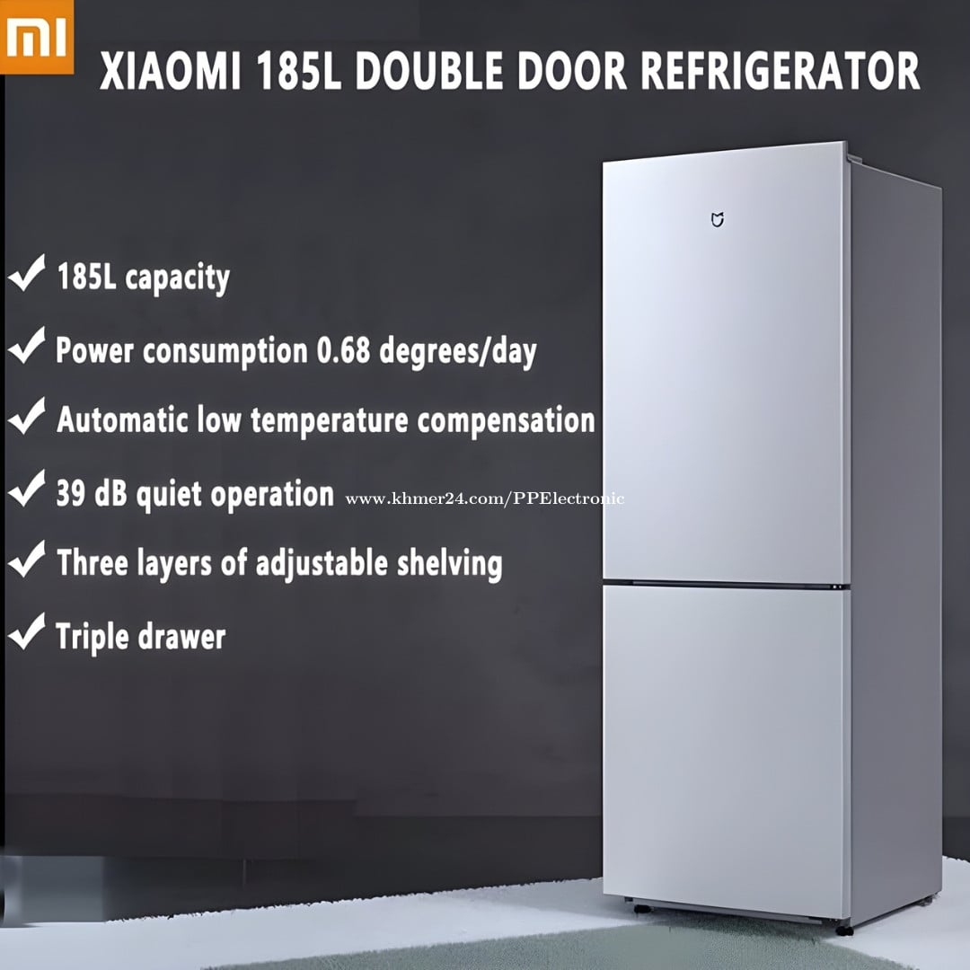 នេះគឺជាទូរទឹកកក Mijia Double Door Refrigerator 185L ដែលរចនាបទឡើងមកមានទ្វារ 2 មានទម្ងន់ស្រាល និងមិនងាយស្អិតជាប់ធូលី មានសំឡេងស្ងាត់ល្អ ងាយស្រួលប្រើប្រាស់ បានគ្រប់ទីកន្លែងមិនថាការិយាល័យ ក្នុងបន្ទប់គេង ឬចង្រ្កានបាយដោយគ្មានសម្លេងរំខានចេញពីទូរទឹកកក 💲តម្លៃត្រឹមតែ 320$ ប៉ុណ្ណោះ 🛡ធានារយៈពេល 6 ខែ 🛵ដឹកជញ្ជូនឥតគិតថ្លៃទូទាំងប្រទេស 🔘លក្ខណៈពិសេស ☑️មានចំណុះទំហំផ្ទុកទាំងមូលធំរហូតដល់ទៅ 185L ☑️ទំហំផ្ទុកផ្នែកត្រជាក់ធម្មតាដល់ទៅ127L ☑️ទំហំបន្ទប់ផ្នែកកកដល់ទៅ 58L ☑️ការប្រើប្រាស់ថាមពលទាបត្រឹមតែ 0.68 k.w ក្នុងមួយថ្ងៃ ☑️សមត្ថភាពត្រជាក់កក 1.5kg/12h ☑️សំឡេងរំខានស្ងាត់ល្អត្រឹមតែចម្ងាយ 39dB តែប៉ុណ្ណោះ ☑️មានទម្ងន់ត្រឹមតែ 38kg ☑️មានទំហំ 525x585x 1518mm