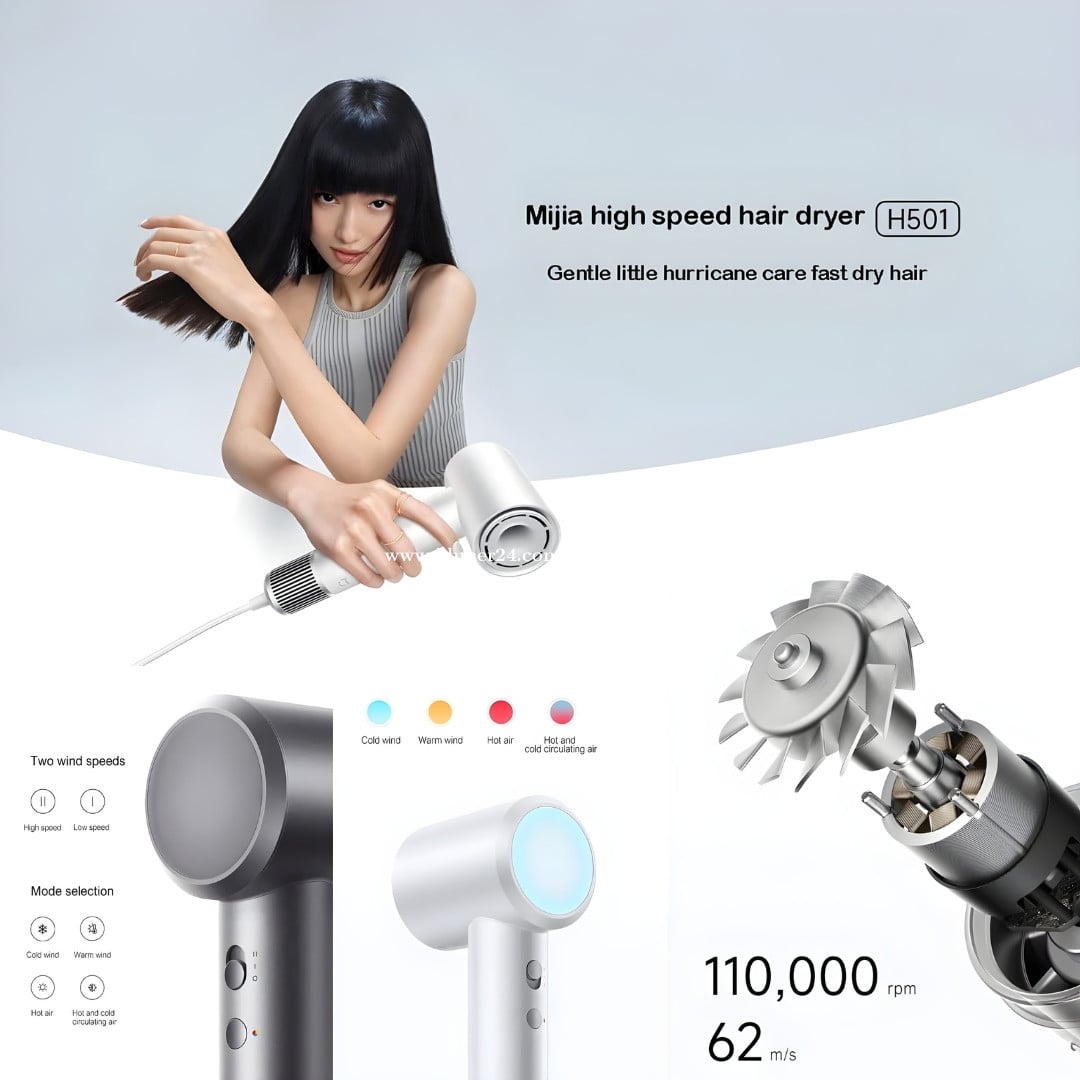 Mijia High-Speed Hair Dryer H501 ជាម៉ាសុីនផ្លុំសក់ដែលមានគុណភាពខ្ពស់ ជាមួយរូបរាងស្អាត ផ្លុំសក់បានស្ងួតលឿនល្អ មិនងាយជំពាក់សក់ មិនធ្វើឲ្យសក់សំពោងចំណាយពេលតិច មានភាពងាយស្រួលក្នុងការប្រើប្រាស់ប្រចាំថ្ងែ 💲តម្លៃត្រឹមតែ 49$ ប៉ុណ្ណោះ 🛡ធានារយៈពេល 6 ខែ 🛵ដឹកជញ្ជូនឥតគិតថ្លៃទូទាំងប្រទេស 🔘លក្ខណៈពិសេស ☑️សម្ងួតសក់លឿនត្រឹមតែ 2 នាទីតែប៉ុណ្ណោះ ☑️កម្លាំងខ្យល់ដល់ទៅ 1600W ☑️ល្បឿនម៉ូទ័រខ្លាំងបង្វិលបានរហូតដល់ទៅ 110000 RPM ☑️ល្បឿនខ្យល់ខ្លាំងរហូតដល់ទៅ 62m/s ☑️សីតុណ្ហភាពថេរ 57°C ☑️ឧបករណ៍ដំណើរការជា​ High-frequency ដល់ទៅ 50 Hz ☑️បំបាត់សក់ជ្រុះ នឹងជួយអោយសក់រលោង ☑️មានសំឡេងរំខានទាបពេលប្រើប្រាស់ ☑️មានភ្លើងសញ្ញា 4 ផ្សេងៗគ្នា​ បញ្ហាញឲ្យដឹងបានភ្លាមៗពីការផ្លាស់ប្ដូរពីសីតុណ្ហភាពខ្យល់ ☑️ការទុកដាក់ងាយស្រួលខ្សែភ្លើងភ្ជាប់មកជាមួយខ្សែ ខ្សែងាយស្រួលទុកដាក់ និងថែទាំ ☑️មានទំហំ 90×69.5×246.7mm ☑️មានទម្ងន់ស្រាលត្រឹមតែ 345g