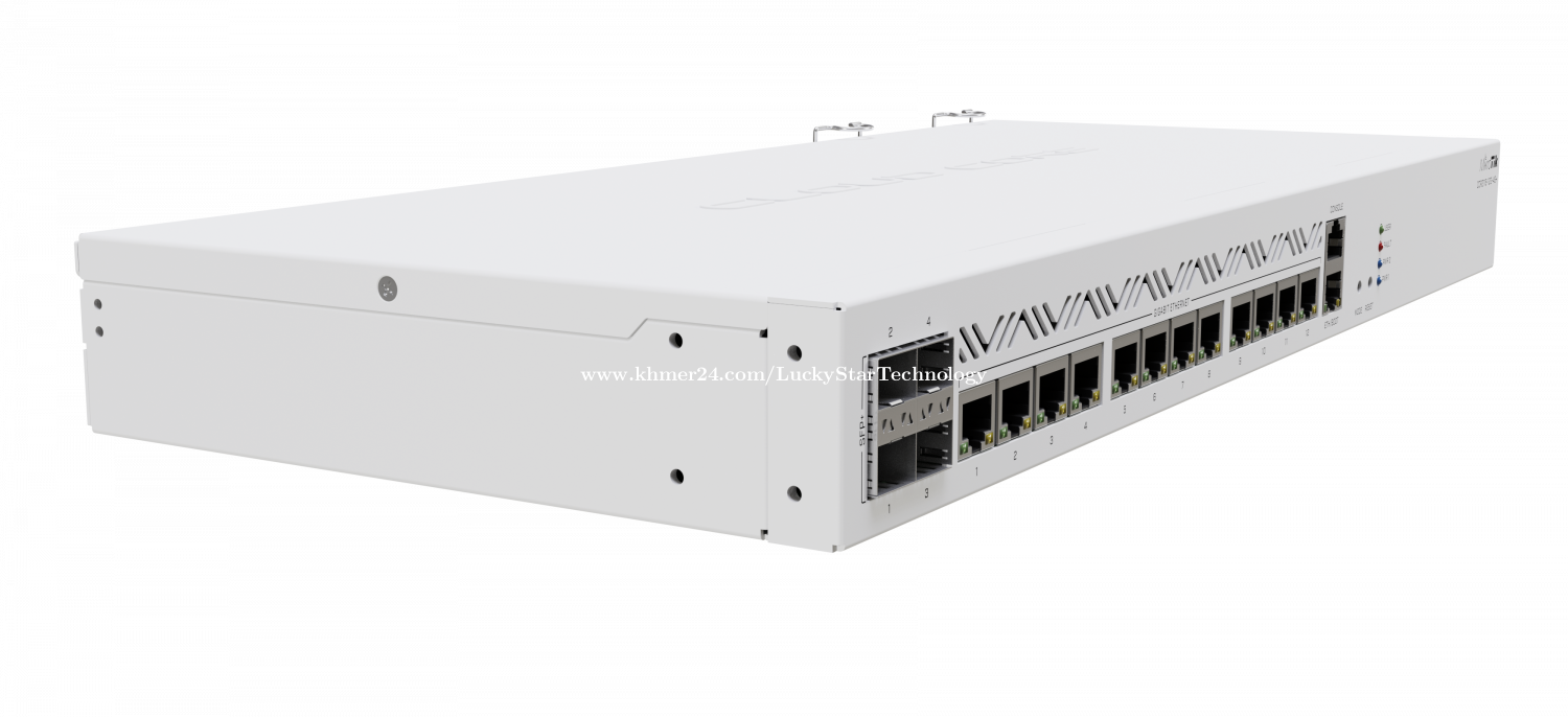 -Product code: CCR2116-12G-4S+ -Architecture: ARM 64bit -CPU: AL73400 -CPU core count: 16 -CPU nominal frequency: 2000MHz -Switch chip model: 98DX3255 -Dimensions: 443 x 199 44 mm -RouterOS license: 6 -Size of RAM: 16GB -Storage size: 128MB -10/100/1000 Ethernet ports: 13 -SFP+ ports: 4 -Serial console port: RJ45