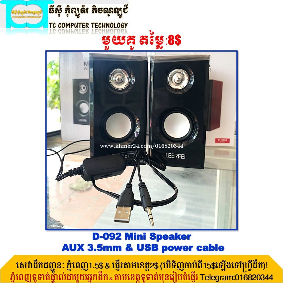 Mini Speakers 📣បើកលក់រៀងរាល់ថ្ងៃ ចាប់ពីម៉ោង7ព្រឹកដល់ម៉ោង10យប់✅ 🏠ជិតស្ពានអាកាសចោមចៅ,ផ្លូវថ្មគោល,ចូលពីផ្លូវវេងស្រេង200ម៉ែត្រ,ភ្នំពេញ🏠 📍Map: https://maps.google.com/maps?q=11.534061,104.834786&ll=11.534061,104.834786&z=16 🏍មានសេវាកម្មដឹកជញ្ជូនភ្នំពេញ1.5$&ផ្ញើរតាមខេត្ត2$គ្រប់ទីតាំង🏍 ⛔️ភ្នំពេញទូទាត់ផ្ទាល់ជាមួយអ្នកដឹក&តាមខេត្តទូទាត់មុនរៀបចំផ្ញើរ⛔️ 📞Tel: 016820xxxClick To Call / 011820xxxClick To Call / 066820xxxClick To Call 📲Telegram: https://t.me/SaoPingtouTC1 📱Telegram Channel: https://t.me/TCComputerAccessories