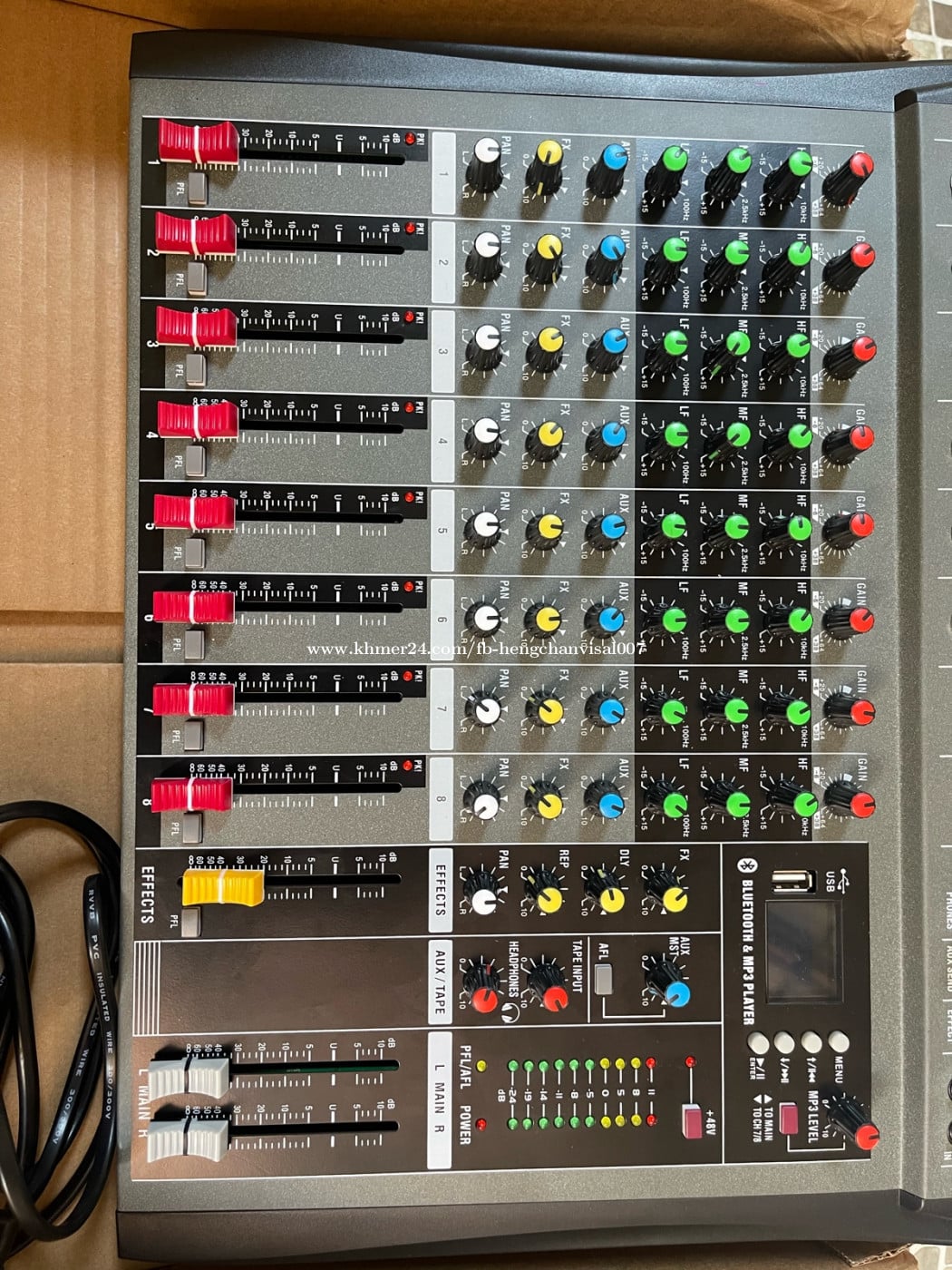 ជាប្រភេទMixer 8 Channel អាចថតសម្លេងជាមួយហ្គីតាឬអប្បករណ៍តន្រ្តីផ្សេងៗបាន..មានBluetooth ប្រើភ្លើង220..នៅថ្មី99%ប្រើបានម្តង