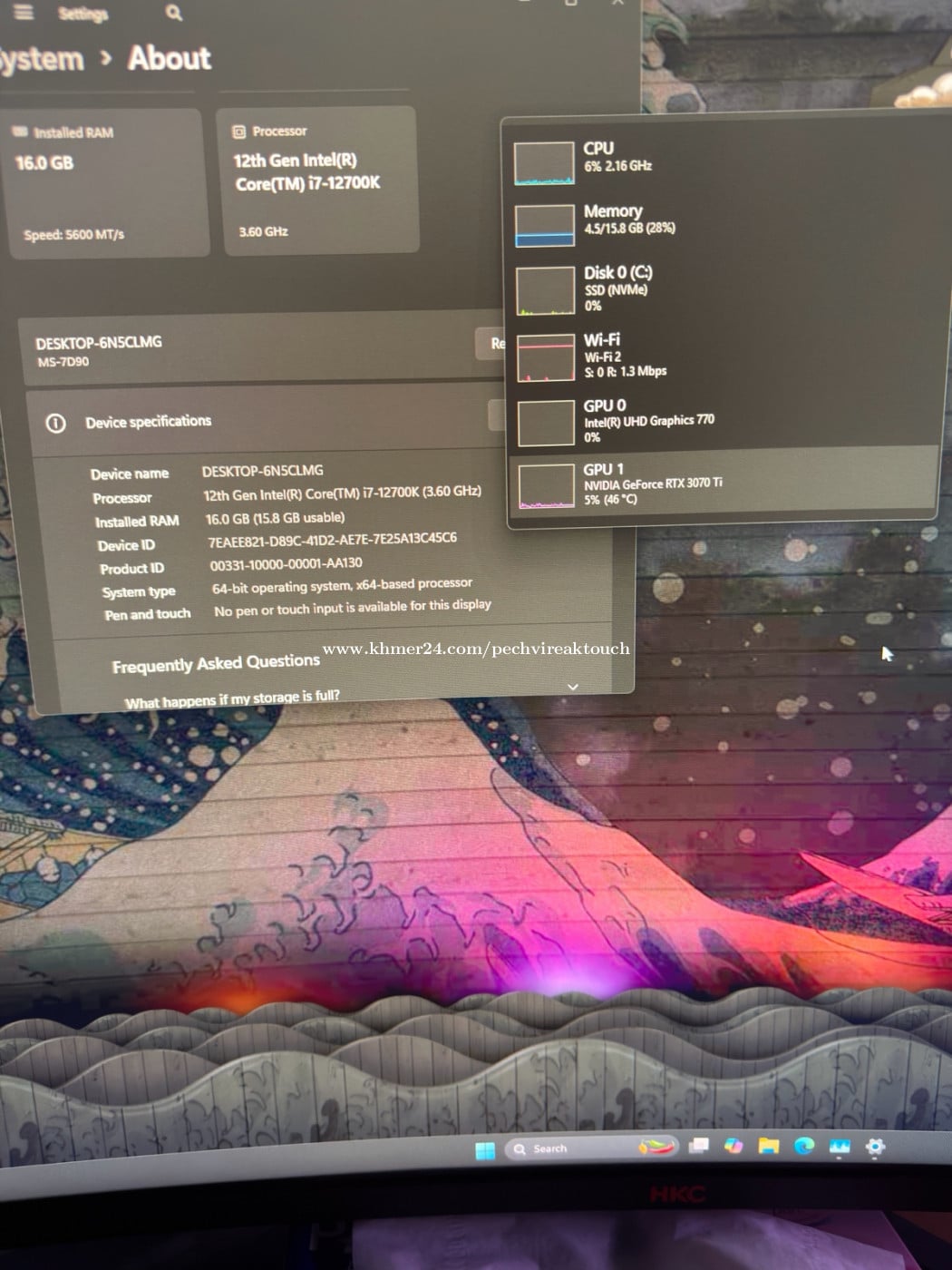 VGA : MSI 3070Ti Gaming X Trio 8G (Good Temp) CPU : Intel Core i7-12700K (3.60 Ghz) Motherboard : MSI B760M BOMBER WIFI SSD : Nvme M2 512GB RAM : ADATA DDR5 16GB Power : 750W Liquid cooler : Great Wall 12xx ស្តេីង negotiation Tel : 095323xxxClick To Call