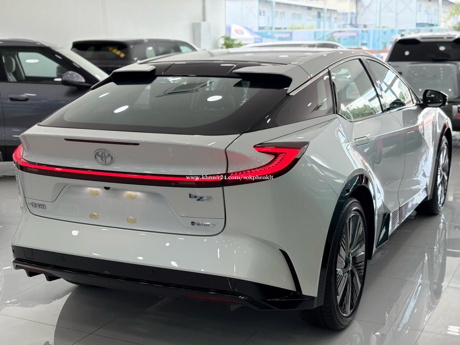 Toyota bz5 pro 630km កម្លាំងរមួល: 330N.m កម្លាំងសេះ : 272hp ល្បឿនអតិបរមា:160 km/h ទំហំនឹងខ្នាតរថយន្ត:4780mm x 1866mm x 1510mm ទំហំអាគុយផ្ទុក : 73.98kwh កំរិតស៊ីភ្លើង : 13.4kwh/100km សាកថ្មលឿន : 48នាទី សាកថ្មយឺត: 11.5ម៉ោង ដំណើរការ:ដោយកង់មុខ Speakers: 10គ្រាប់ ធានារ:3ឆ្នាំរឺ 10ម៉ឺនkm
