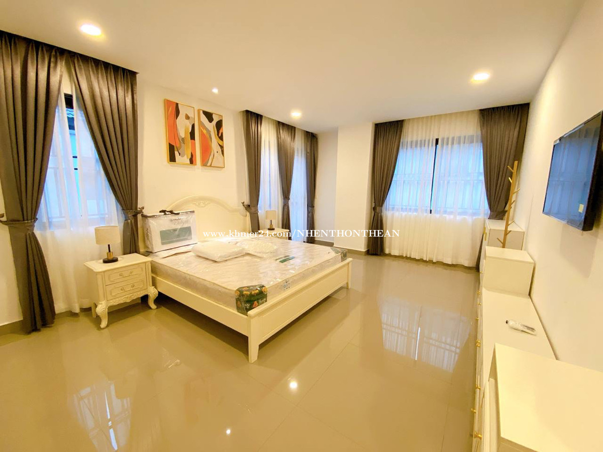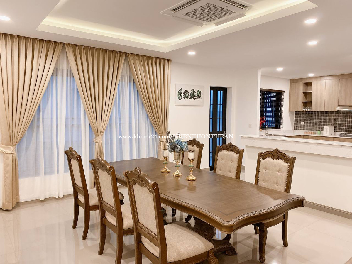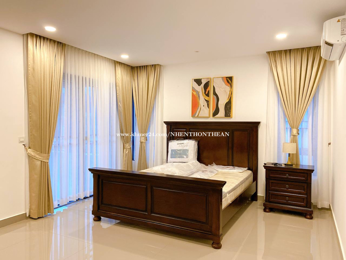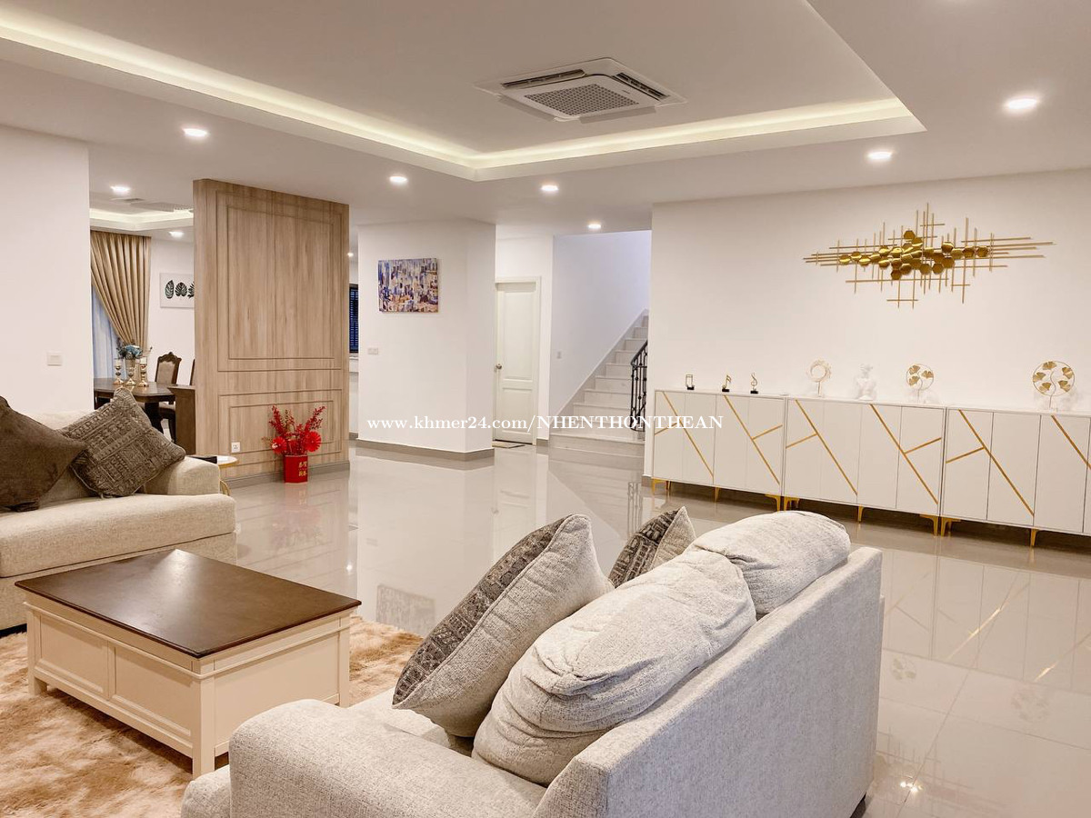 Queen Villa For Rent Along Street 60M in Chip Mong Close to Aeon Mall3. Rental fee:$5000/Month Fully Furnished Bedroom :06 Bathroom :06 Floor:3th floors Parking: 2 Cars It very good for living & safe area, 10 minutes from ISPP, 20 Minutes from Beoung Keng Kang1 & Naga world.