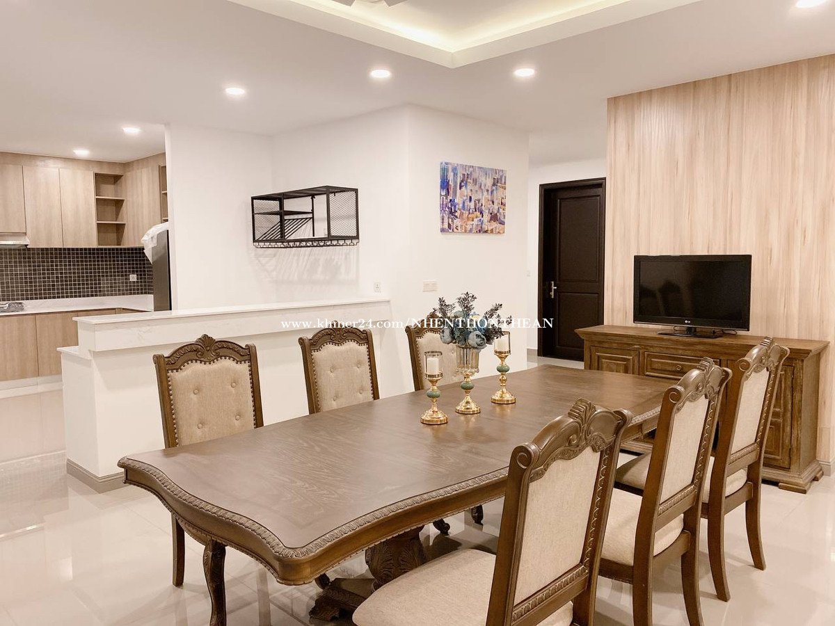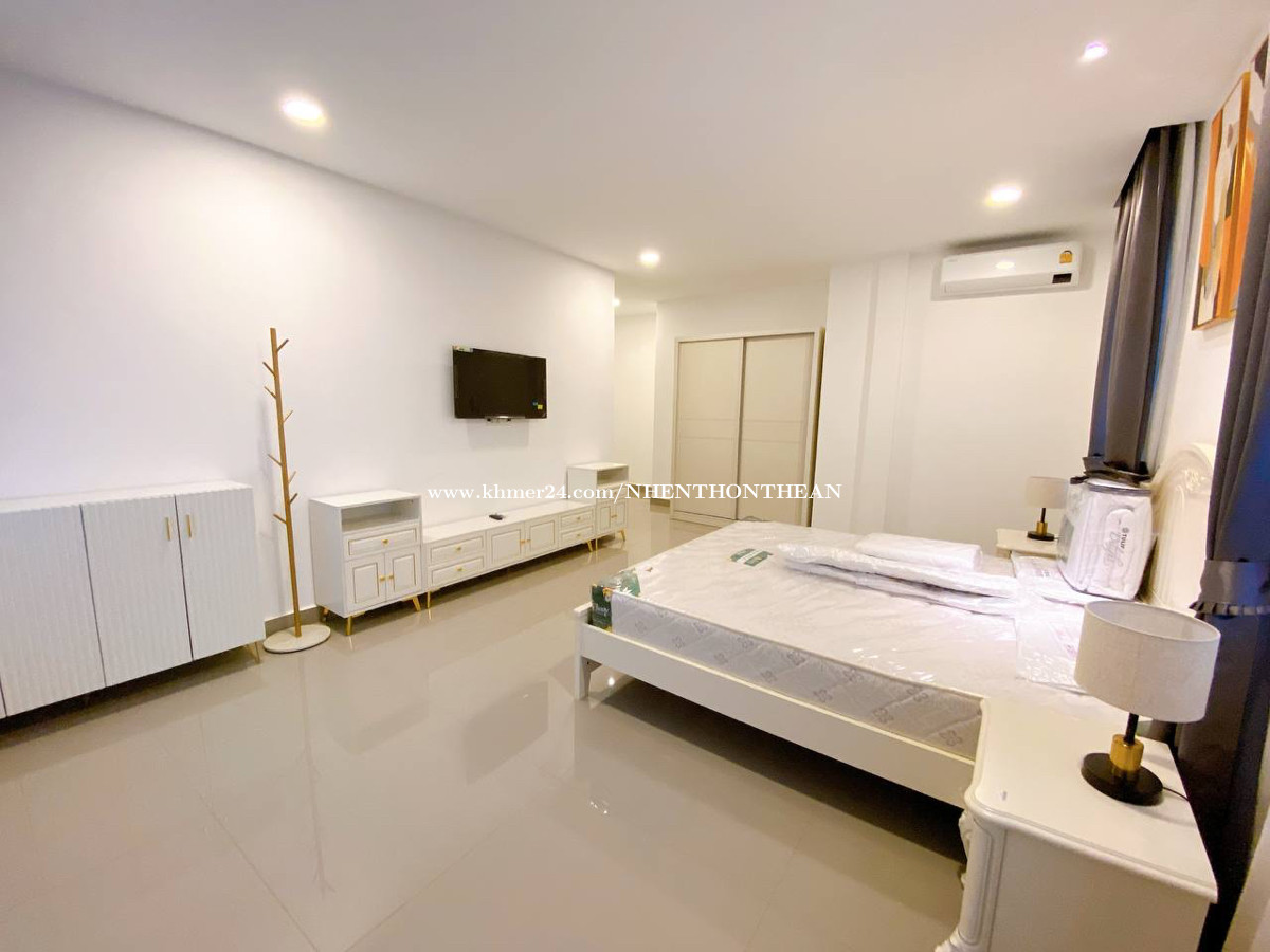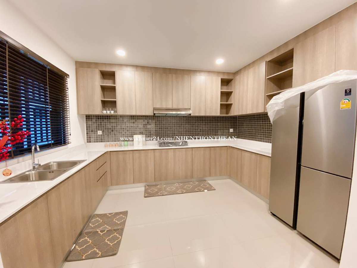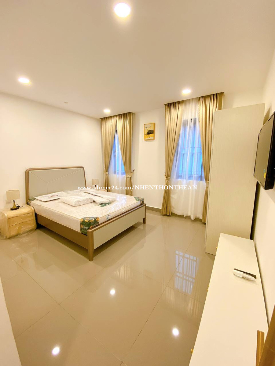Queen Villa For Rent Along Street 60M in Chip Mong Close to Aeon Mall3. Rental fee:$5000/Month Fully Furnished Bedroom :06 Bathroom :06 Floor:3th floors Parking: 2 Cars It very good for living & safe area, 10 minutes from ISPP, 20 Minutes from Beoung Keng Kang1 & Naga world.