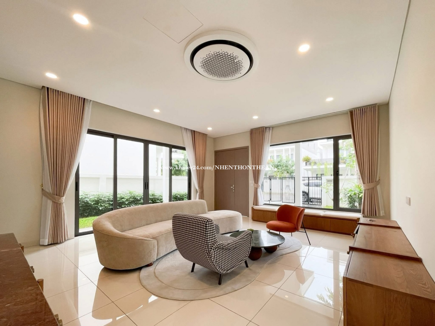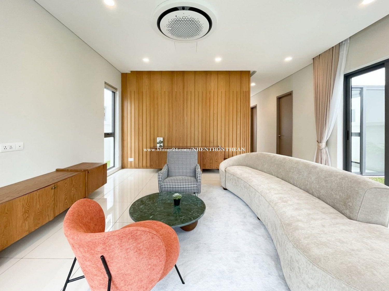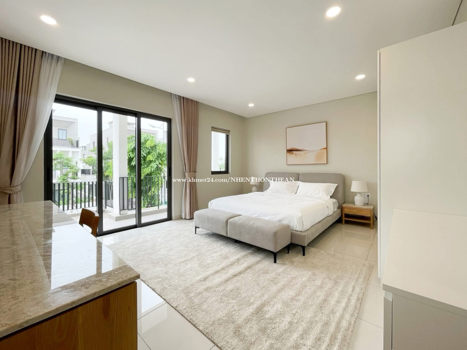 Compound villa 4 Bedrooms For Rent in Borey Chankiri. Price: $2500 per month Bedroom:04 plus1 maid room Bathroom:06 Furniture: fully furnished Parking: 2 cars up It is very good for living and office safe area no flooding.