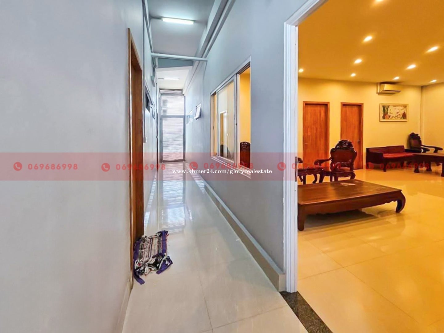 This modern office-style warehouse is now available for lease along a sub-concrete road in the Sen Sok area of Phnom Penh. Featuring a contemporary interior design and a functional multi-level layout, the property is well-suited for businesses seeking a professional working environment combined with warehouse or operational space. Property Overview - Building size: 16 m ร 36 m - Land size: 17.89 m ร 42.12 m - Structure: Ground floor + mezzanine (total 3 levels) - Office: 1 large office - Living / open space: Open-plan living area - Kitchen: 1 - Rooms: 6 - Bathrooms: 4 - Electricity: 63 Amps, 3-phase Key Features - Modern office fit-out with contemporary interior design - Mezzanine floor creating flexible working and storage space - Suitable for mixed-use office and operational functions - Sub-concrete road access with convenient connectivity Suitable For - Company office or headquarters - NGO or organization office - Vehicle garage - Storage facility - Small-scale manufacturing or light production ๐ Property ID: GP-60715 For more information or to schedule a viewing, please donโt hesitate to contact us. ๐ฒ Call: 069686xxxClick To Call/099688xxxClick To Call ๐ฌ Telegram: https://t.me/glorycam ๐ฌ WhatsApp: https://wa.me/+85569686998 ๐ฌ WeChat: gloryrealestate ๐ง Email: con****@glorycambodia.comClick To Sent Email