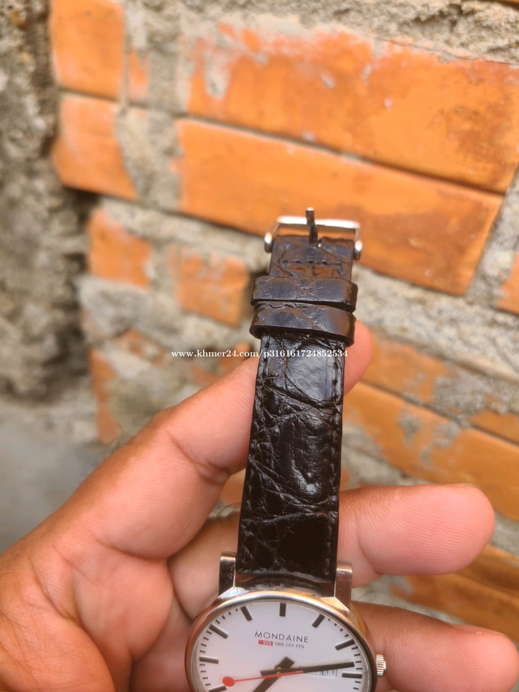 MONDAINE SWISS MADE AUTOMATIC មុខ 40 ខ្សែលេខ 20 ក្បាលរុយដាក់ថ្មី ខ្សែរក្រពេីដាក់ថ្មី ម៉ាសុិនមិនទានធ្វេីអីនៅស្អាត