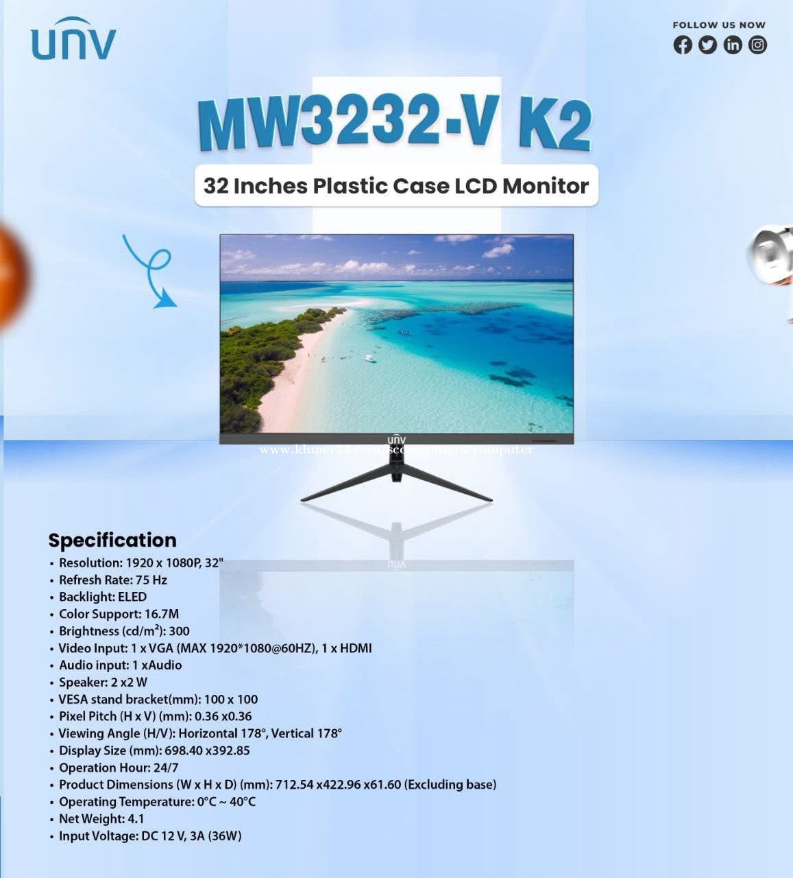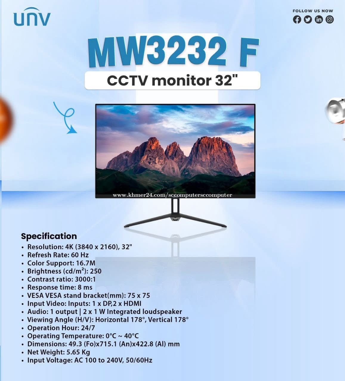 Monitor Brand UNV ថ្មីប្រអប់ អីវ៉ាន់មាននៅក្នុងស្តុកស្រាប់បងៗអាចធ្វើការកម្ម៉ង់បាន មានធានារយះពេល1ឆ្នាំពេញ 📩 Price :xx$ 💵 UNV 22"Inch LCD Monitor With Speaker MW-LC22-P 68$ UNV 24"Inch LCD Monitor MW-LC24=73$ UNV 27"Inch LCD Monitor MW-LC27=89$ UNV 32"Inch 4K LCD Monitor With Speaker MW3232-F=235$ UNV 32"Inch LCD Monitor With Speaker MW3232-V-K2=165$ UNV 55" 4K LED Monitor MW3255-F-V2= 370$ មាននៅហាង SC Computer អេសសុីកុំព្យូទ័រ 💁🏻♀️✅ ឆាតមកផ្ទាល់បានចា ❤️ ☎️ 089978xxxClick To Call telegram(ឈី ឈី) ☎️ 016200xxxClick To Call Smart ចុចLink ចូលគ្រុបបោះដុំ បាន 👇🏻 ✅ Link Group បោះដុំ = https://t.me/+G4d1DH1HM51jZGE1 ✅Link TikTok = https://www.tiktok.com/@kimchhy77?_t=8rsylp5kaDH&_r=1 ✅Link Telegram = https://t.me/kimchhy_999 ✅Link Khmer 24 = https://www.khmer24.com/sccomputersccomputer ✅Link FB = https://www.facebook.com/share/1HXXej9fPH/?mibextid=LQQJ4d ✅Maps : https://maps.app.goo.gl/amXqFMtwRzDdWHKQ9 អរគុណបងៗសំរាប់ការគ្រាំទ្រហាងSC Computer អេសសុីកុំព្យូទ័រ យើងខ្ញុំរហូតមក🙏🏻❤️