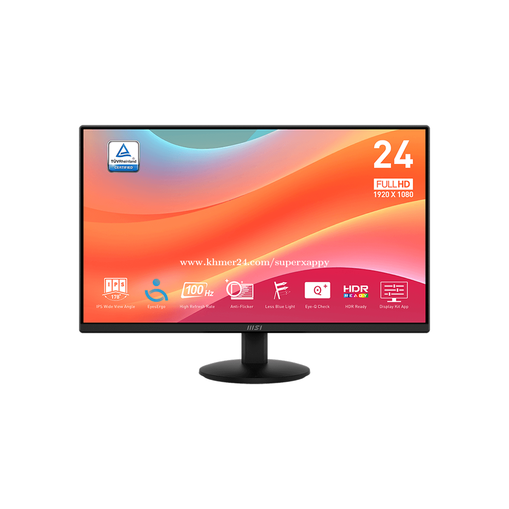 PANEL SIZE : 23.8" PANEL RESOLUTION : 1920 x 1080 (FHD) REFRESH RATE : 100Hz RESPONSE TIME : 1ms (MPRT) / 4ms (GTG) PANEL TYPE : IPS BRIGHTNESS (NITS) : 250 cd/m2 VIEWING ANGLE : 178°(H) / 178°(V) ASPECT RATIO : 16:9 CONTRAST RATIO : 1000:1 ADOBE RGB / DCI-P3 / SRGB : 85% / 83% / 104% (CIE1976) ACTIVE DISPLAY AREA (MM) : 527.04(H) x 296.46(V) PIXEL PITCH (H X V) : 0.2745 (H) x 0.2745 (V) SURFACE TREATMENT : Anti-glare DISPLAY COLORS : 16.7M COLOR BIT : 8 bits (6 bits + FRC) HDR SUPPORT : HDR Ready VIDEO PORTS : 1x HDMI™ 1.4b (FHD@100Hz), 1x DisplayPort 1.2a AUDIO PORTS : 1x Headphone-out KENSINGTON LOCK : Yes POWER TYPE : External Adaptor 12V 2A POWER INPUT : 100~240V, 50/60Hz DYNAMIC REFRESH RATE TECHNOLOGY : Adaptive-Sync ADJUSTMENT (TILT) : -3.5°~21.5° DIMENSION (W x D x H) : 542 x 174 x 391 mm, (21.34 x 6.85 x 15.39 inch) CARTON DIMENSION (W X D X H) : 600 x 111 x 400 mm, (23.62 x 4.37 x 15.75 inch) WEIGHT (NW / GW) : 1.8 kg (3.97 lbs) / 3.3 kg (7.28 lbs) CERTIFICATES : CB/CE, Energy Star VIDEO INPUT COMPATIBILITY : PC, Mac, PS5™, PS4™, Xbox, Mobile, Notebook * All trademarks and the registered trademarks are the property of their respective owners. ACCESSORIES : 1x HDMI™ Cable (1.4), 1x Power Adaptor, 1x Quick Guide Note : HDMI™: 1920 x 1080 (Up to 100Hz), DisplayPort: 1920 x 1080 (Up to 100Hz) HDMI CEC Support CONTACT TELEGRAM : @superxappy 0883784xxxClick To Call