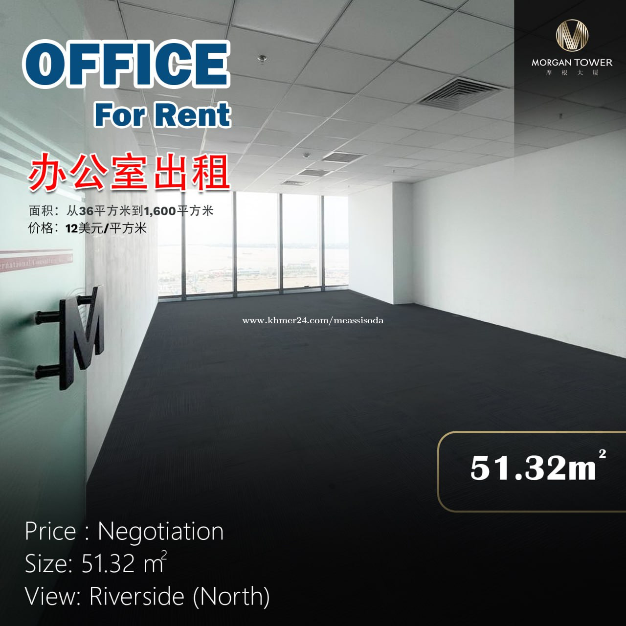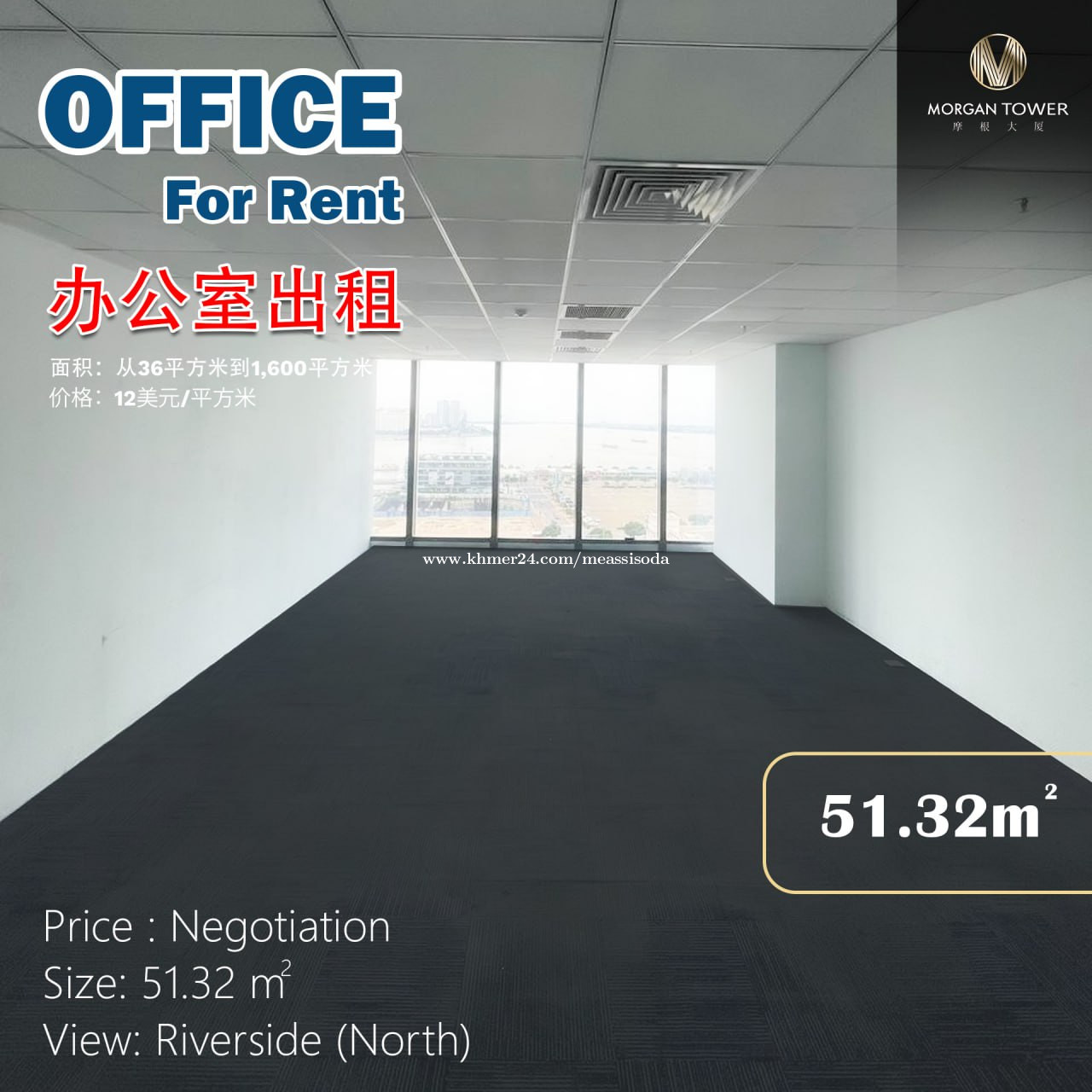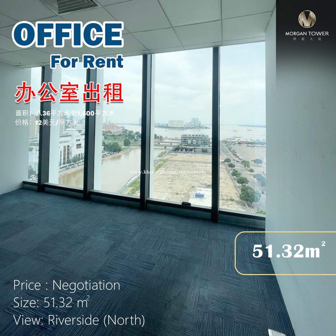 Office Space For Rent (Special Price) - Rent Price: $970/month (Include Management Fee) - Area : 51.32sqm - Floor: 8F - Price : Negotiation ——————————————- 1. Security 24h 2. Cleaning of public areas 3. Material Air-Conditioner (7:30am to 5:30Pm) ទំនាក់ទំនងសម្រាប់ពត៌មានបន្ថែម: (ID: OFR7) Telegram: https://t.me/SisodaRealEstate WhatsApp: https://wa.me/85512762847 Join Telegram Channel: https://t.me/PhnomPenhOfficeRent