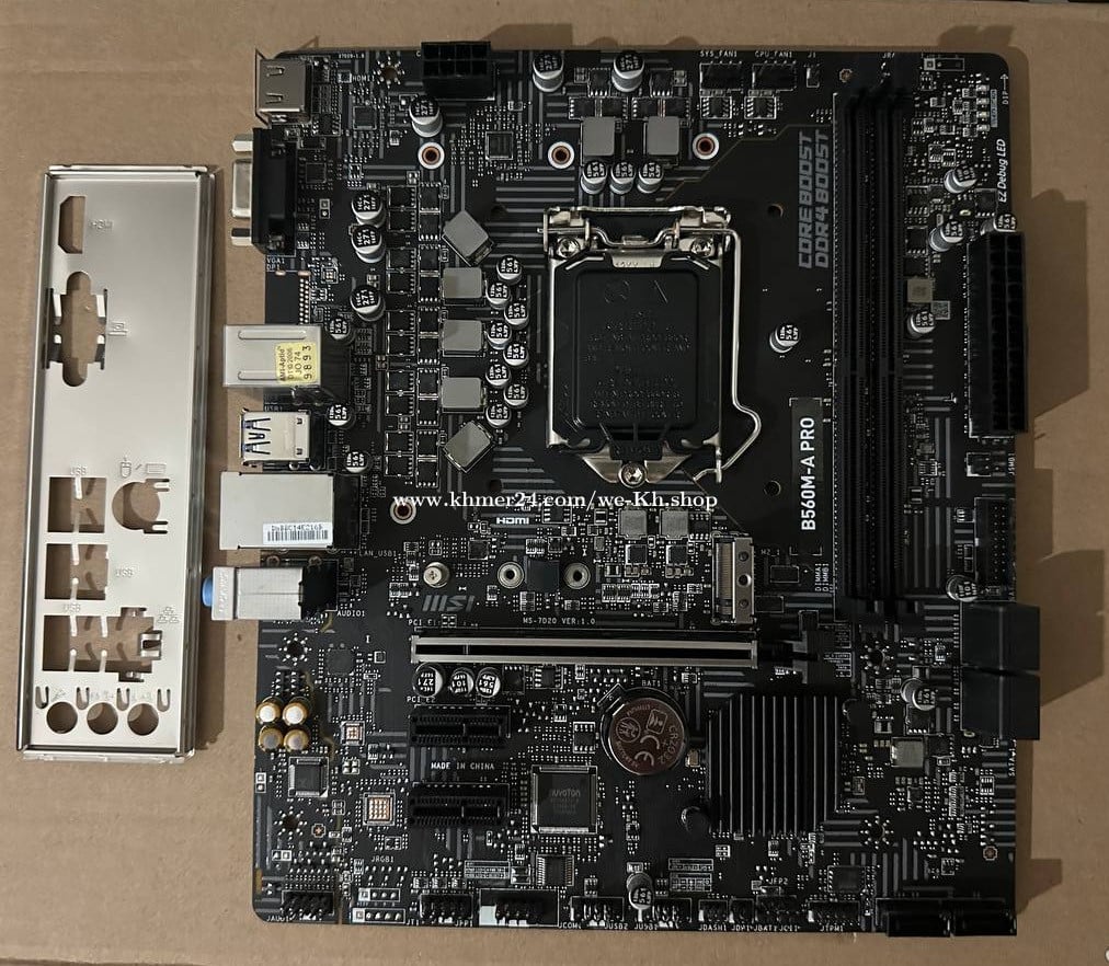 Brand: MSI Model: B560M-A PRO Supports: 10th / 11th Generation Intel® Core™ Processors Memory: DDR4 memory slots, support up to 64GB Ram: Dual Channel DDR4, 2 DIMMs Conditions: New without box Warranty: 3 months ដើម្បីទទួលបាន ព័ត៌មានថ្មីៗ លម្អិត និងការផ្តល់ជូនតម្លៃពិសេសៗ សូមទំនាក់ទំនង៖ Contact: 0969854xxxClick To Call / 0883332xxxClick To Call Telegram: https://t.me/yukmongkol