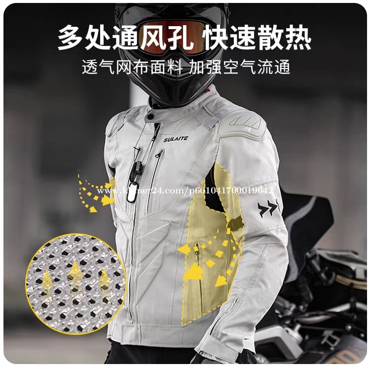 Armor motorcycle jacket for travel protection Seven piece ce certified armor Two piece chest, two shoulder, two albow, one back Large venting surface for cooling used a few times only. Too small for me Perfect for under 155 pounds 70 with all armor, 40 without armor