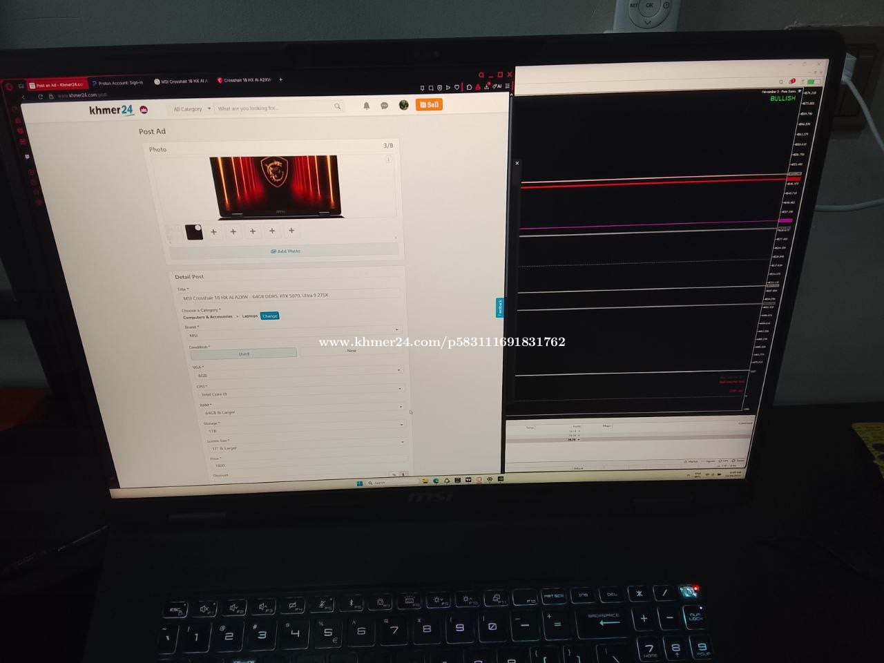 Crosshair 18 HX AI A2XWGKG - 2025 18” QHD+ (2560x1600), 240Hz, IPS-Level 64GB DDR5-6400 1 TB NVME Gen 5 RTX 5070 8GB GDDR7 3 months old. Selling to buy a desktop for video editing. Still under warranty from MSI. Like new, no problems. Paid $2350 in Singapore for it.