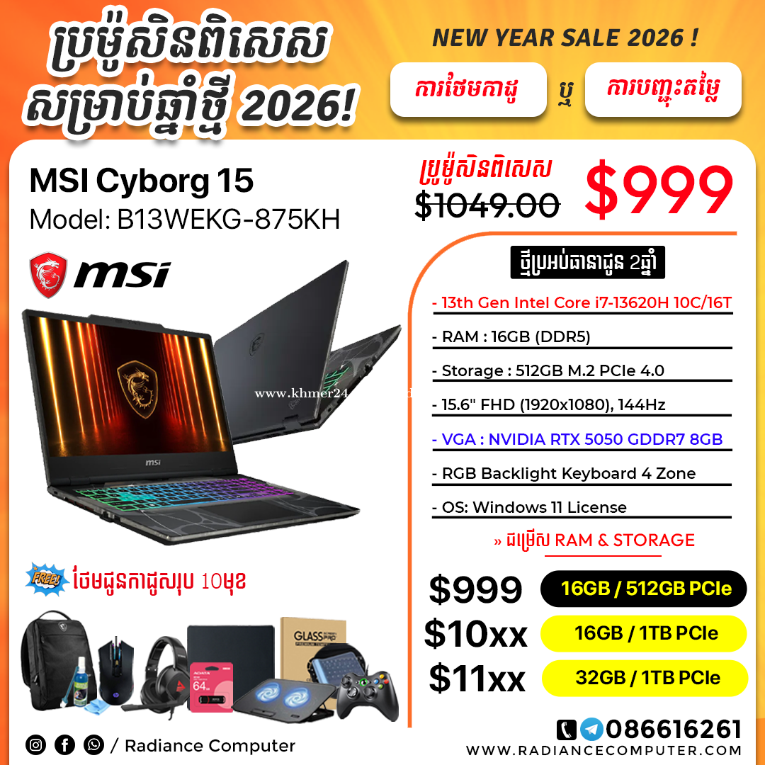 មានលក់នៅរេឌានកុំព្យូទ័រ រាល់ការជាវ Laptop និងទទួលបាន ការតម្លើង Software+ Game ឥតគិតថ្លៃ Lifetime ================== ☎️𝐂𝐚𝐥𝐥 𝐍𝐨𝐰: 086616xxxClick To Call- 011616xxxClick To Call 👉𝐖𝐨𝐤𝐢𝐧𝐠 𝐓𝐢𝐦𝐞: 8:00am - 6:30pm (Mon-Sun) 👉𝐓𝐢𝐤𝐓𝐨𝐤: https://www.tiktok.com/@radiancecomputer 🌐𝐖𝐞𝐛𝐬𝐢𝐭𝐞: https://www.radiancecomputer.com/#promotion 💬𝐓𝐞𝐥𝐞𝐠𝐫𝐚𝐦: 086616xxxClick To Call https://t.me/radiancecomputerkh 👉𝐓𝐞𝐥𝐞𝐠𝐫𝐚𝐦 𝐂𝐡𝐚𝐧𝐧𝐞𝐥: https://t.me/radiancesale 🗺ទីតាំង: ក្រោយវិទ្យាល័យជាស៊ីមសាមគ្គី 🗺Map : https://maps.app.goo.gl/aqncarjP8VPA7vLE9 =========================