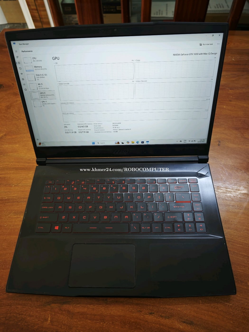 Laptop MSI/ VGA GTX 1650-4G With Max-Q Design CPU i5-9300H / 4 Cores/8 Threads Ram 16GB Storage M.2 512GB VGA GTX 1650-4G Screen 15.6 inches Bluetooth Wireless Network Camera: No ----------------- Price: 360$ Warranty: 1 month