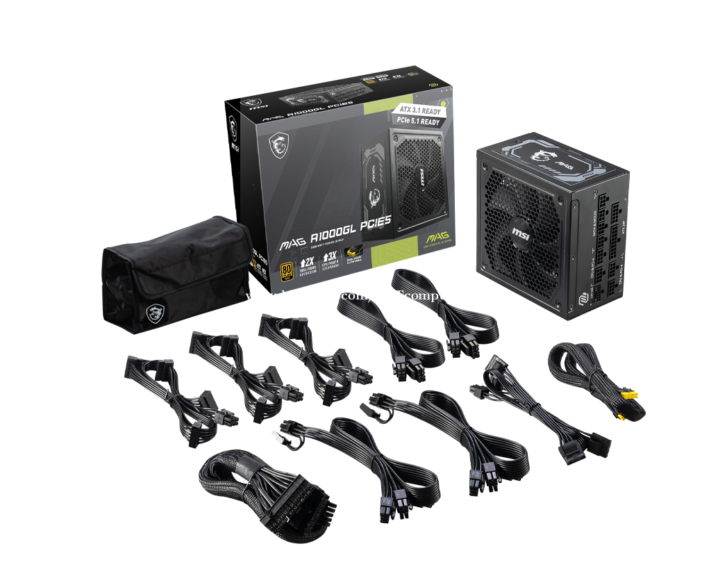 MSI MAG A1000GL 1000W 80 Plus Gold Full Modular (1000W / 80 Plus Gold / Full Modular / Active PFC / PCIe 5.1 / ATX 3.1 / Fan 135mm / ATX )