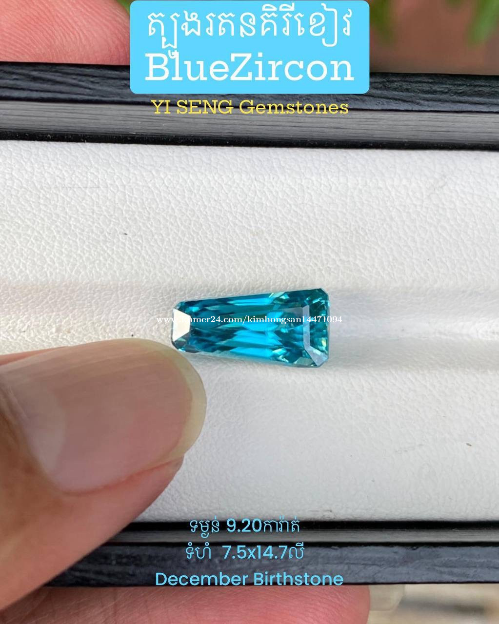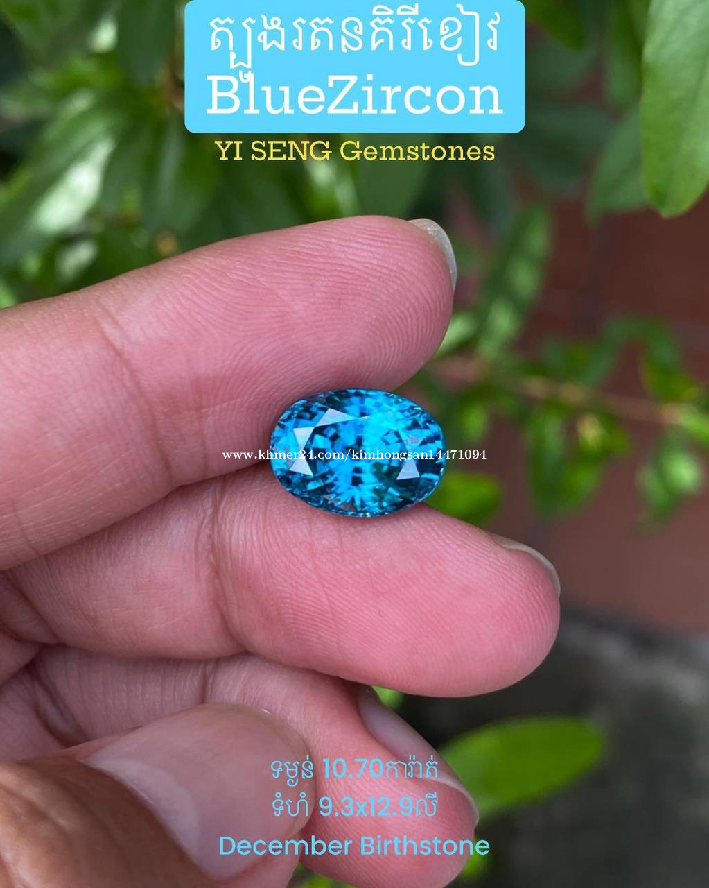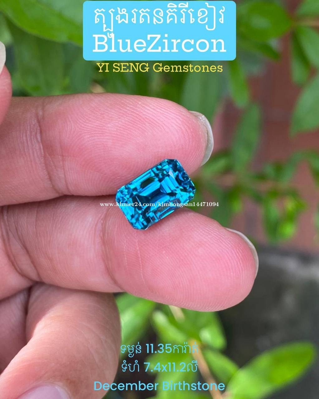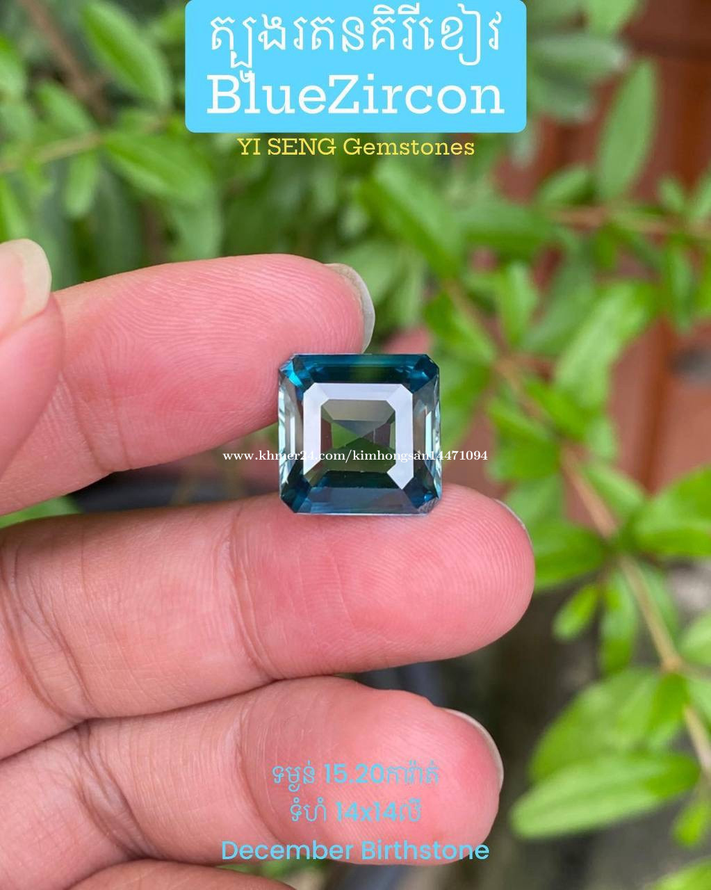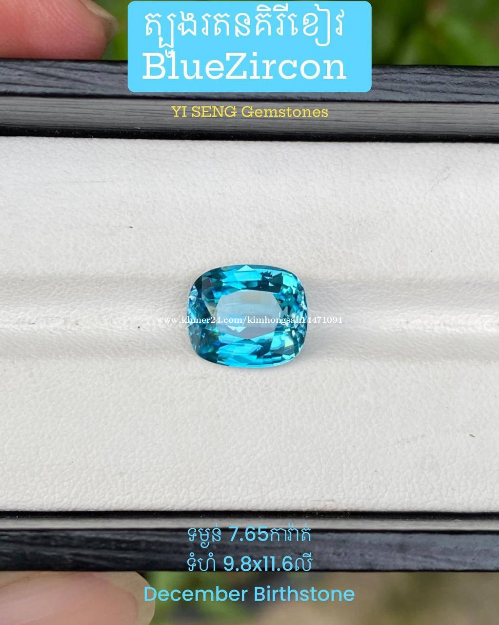 Blue zircon gemstone (natural mineral)