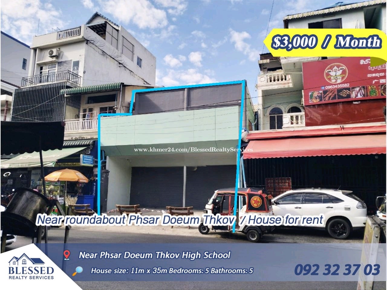 Near roundabout Phsar Doeum Thkov ๐ฅ House for rent ๐ฅ ๐ฐ Price: $3,000 / month โจ House size: 11m x 35m โจ Bedrooms: 5 โจ Bathrooms: 5 โจ Floors: 2 โจ Two entrances, front and back ๐ Location: Near Phsar Doeum Thkov High School, great for business and living. ้ ่ฟๅคๅง็น็งๅธๅบ็ฏๅฒ ๐ฅ ๆฟๅฑๅบ็ง ๐ฅ ๐ฐ ็ง้๏ผ$3,000 / ๆ โจ ๆฟๅฑ้ข็งฏ๏ผ11็ฑณ x 35็ฑณ โจ ๅงๅฎค๏ผ5้ด โจ ๅซ็้ด๏ผ5้ด โจ ๆฅผๅฑ๏ผ2ๅฑ โจ ๅๅๅๅ ฅๅฃ ๐ ไฝ็ฝฎ๏ผ้ ่ฟๅคๅง็น็ง้ซไธญ๏ผๅฐ็ไฝ็ฝฎไผ่ถ๏ผ้ๅๅ็ๆๅๅฑ ไฝใ ๐ Contact: 092323xxxClick To Call โก๏ธ Telegram: https://t.me/az_chai27 Channel Telegram: https://t.me/rent_blessedrealty License Number: E-25-030