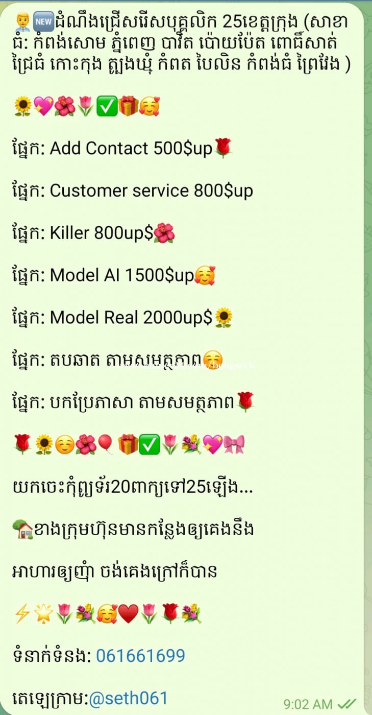 Contact Info: Please don't forget to mention that you found this ad on khmer24.com.