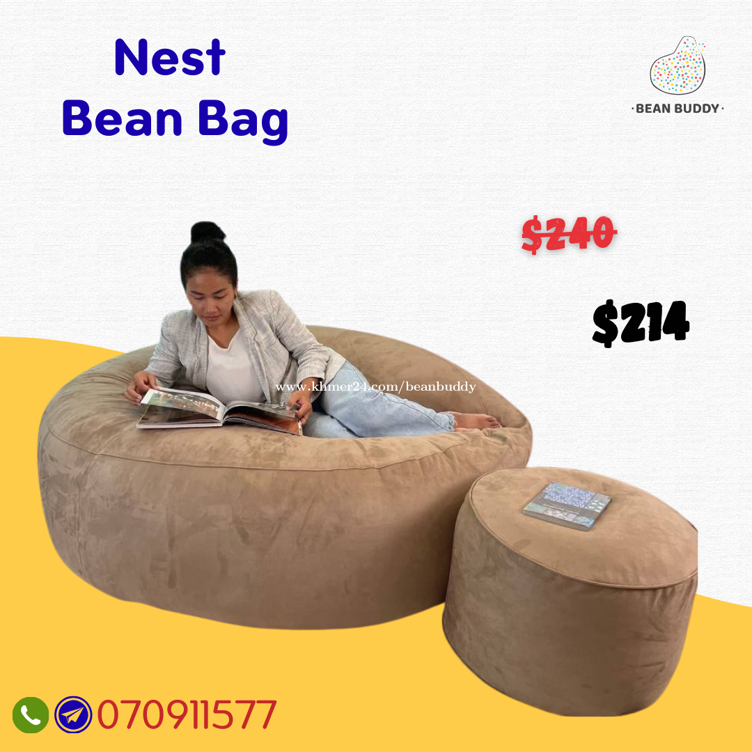 សាឡុងអង្គុយគ្រាប់ស្នោម៉ូត Nest Bean Bag ✅ទំហំធំទូលាយ (ស្រាលអាចលើកផ្លាស់ទីបាន) ✅ទន់ត្រជាក់ អង្គុយឬគេងមិនឈឺខ្នង កាន់តែស្រួលខ្លួន ✅ស្រួលអង្គុយ/គេង សម្រាប់បងបងមានគីឡូ 70kg-120kg លែងបារម្ភក្នុងការរកសាឡុង/កៅអីដែលស្រួលអង្គុយទៀតហើយ 070911xxxClick To Call Telegram.