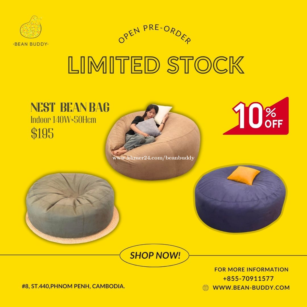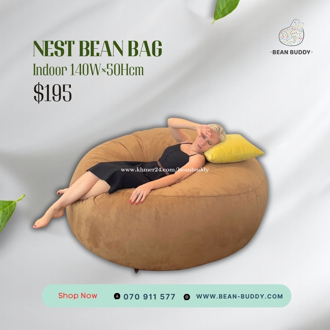 Nest bean bag sofa perfect for lounging relaxing and comfy Good quality materials Soft indoor fabric cover Free delivery within in PhnomPenh For information ๐ฑTelegram 070911xxxClick To Call แแทแโ Facebook page https://goo.gl/maps/AxSh2eguoxpwuJCa ๐Shop #8, st. 440 Boeung Trabaek, Phnom Penh Open Monday - Saturday (10:00am - 6:00pm) Location: st.440 Boeng Trabaek, Chamkar Mon, Phnom Penh