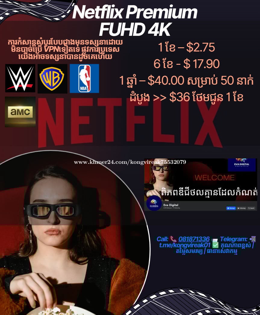 🎉ចូលឆ្នាំ 2026 ក្រុមហ៊ុនកុនលំដាប់អន្តរជាតិ NF បាទបើកឱ្យប្រទេសកម្ពុជាយើងទស្សនាកាន់តែសម្បូរបែប ភាពយន្តនិងកីឡាការផ្សាយបន្តផ្ទាល់ដោយយើងមិនបាច់ប្រើប្រាស់ VPN ទៀតទេ🤩 📩 ចាប់ផ្តើមឥឡូវនេះ! សូម Inbox ឬ Telegram ដើម្បីចុះឈ្មោះ ឬ សួរព័ត៌មានបន្ថែម។ 📞 Call: 📞 081871xxxClick To Call 📨 Telegram: 📲 t.me/kongvireak01 ✅ គុណភាពខ្ពស់ | តម្លៃសមរម្យ | ធានាសេវាកម្ម 🟩 អ្វីដែលអ្នកទទួលបាន៖ ✅ Premium Account (4K Ultra HD Quality) ✅ 1 Screen Only – មានតែអ្នកទេសម្រាប់មើល ✅ Profile ផ្ទាល់ខ្លួន – ដាក់ឈ្មោះអ្នកផ្ទាល់ ✅ Private Profile + PIN Code 🔒 គ្មាននរណាអាចចូលប្រើបានក្រៅពីអ្នក 🛡 ធានាសេវាកម្ម 100% សងលុយវិញ បើ៖ ⚠️ Account មានបញ្ហា ⚠️ មើលមិនគ្រប់រយៈពេល 💰 សងប្រាក់ចំនួនខែដែលនៅសល់