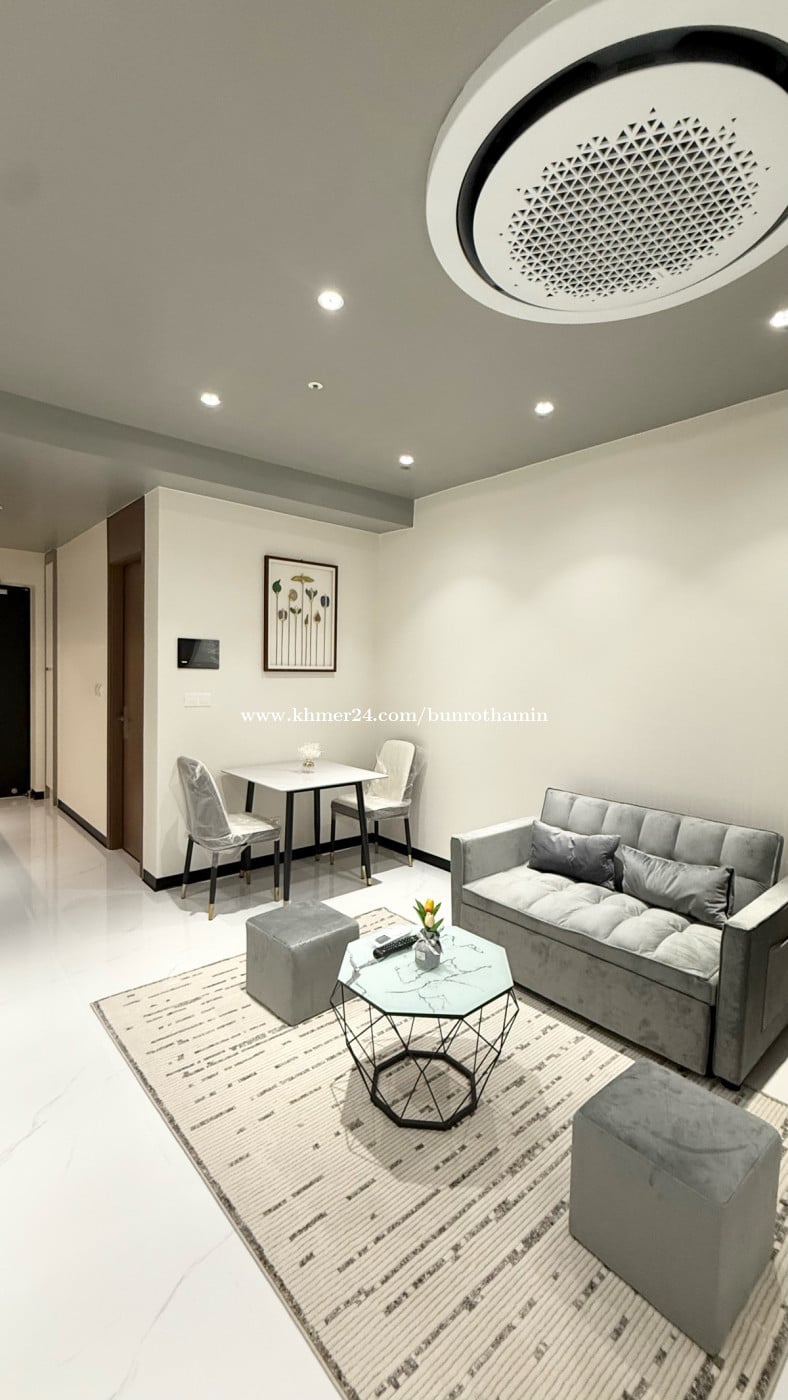 New Modern Luxury Studio Condo for Rent 📍 Location: Diamond Bay Garden, Koh Pich (Diamond Island) 📐 Size: 44 sqm 🏢 Floor: 6th Floor – River View 🛏️ Room: 1 Studio Room 🚿 Bathroom: 1 Modern Bathroom 🛋️ Fully Furnished with: • Bed & Mattress • Air Conditioner • Refrigerator • Washing Machine • Smart TV • Fully Equipped Kitchen • Hot & Cold Water 💰Rental Price: • 750$ / Month (Negotiate) 💎 Special Offer: • Free Management Fee • Free Parking Fee • Free Internet WiFi
