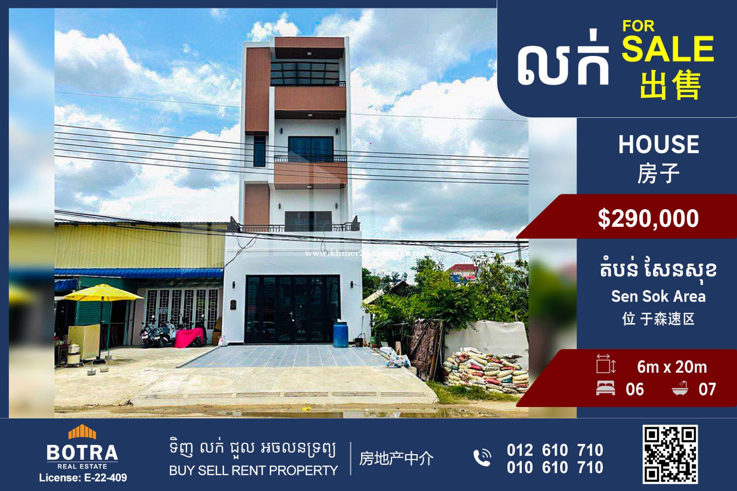 ๐ก New House for Sale #P1164 ๐ Location in Sen Sok Area - Land size: 6m x 20m - House size: 6m x 15m - Bedrooms: 6 | Bathrooms: 7 ๐ Price: $290,000 (nego) โโโโโโโโโ Contact us now ๐ 012610xxxClick To Call (Cellcard) ๐ 010610xxxClick To Call (Smart) โถ๏ธ t.me/BotraRealEstate (Chat)