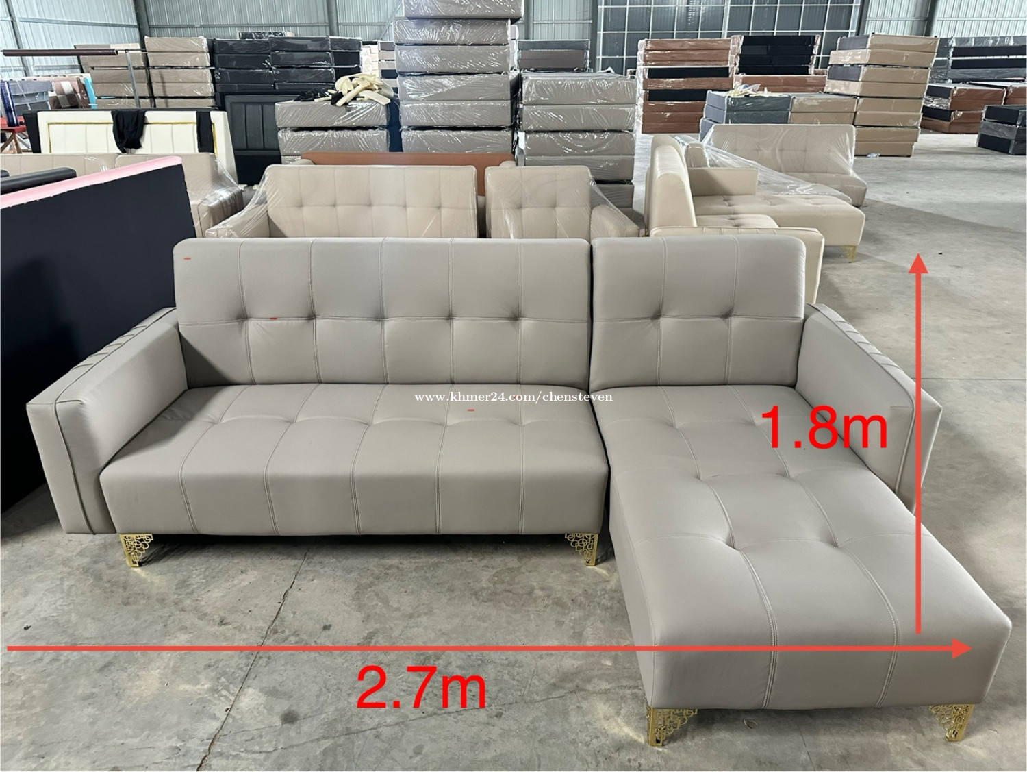 2.7m×1.8m Sofa, Color:white, grey, brown Delivery free in Phnom Penh មិនរួមបញ្ចូលពូក។ ដឹកជញ្ជូនឥតគិតថ្លៃក្នុងក្រុងភ្នំពេញ 金边市内免费送货 Contact: https://t.me/stevenchencs