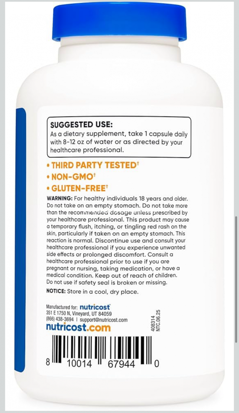 Bought in USA and brought to Cambodia but now don’t need it. Niacin B3 Nuticost Brand New unopened Expire Date 2027