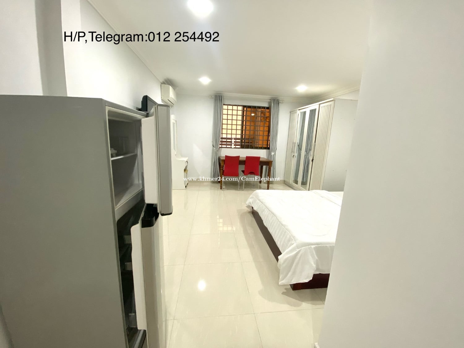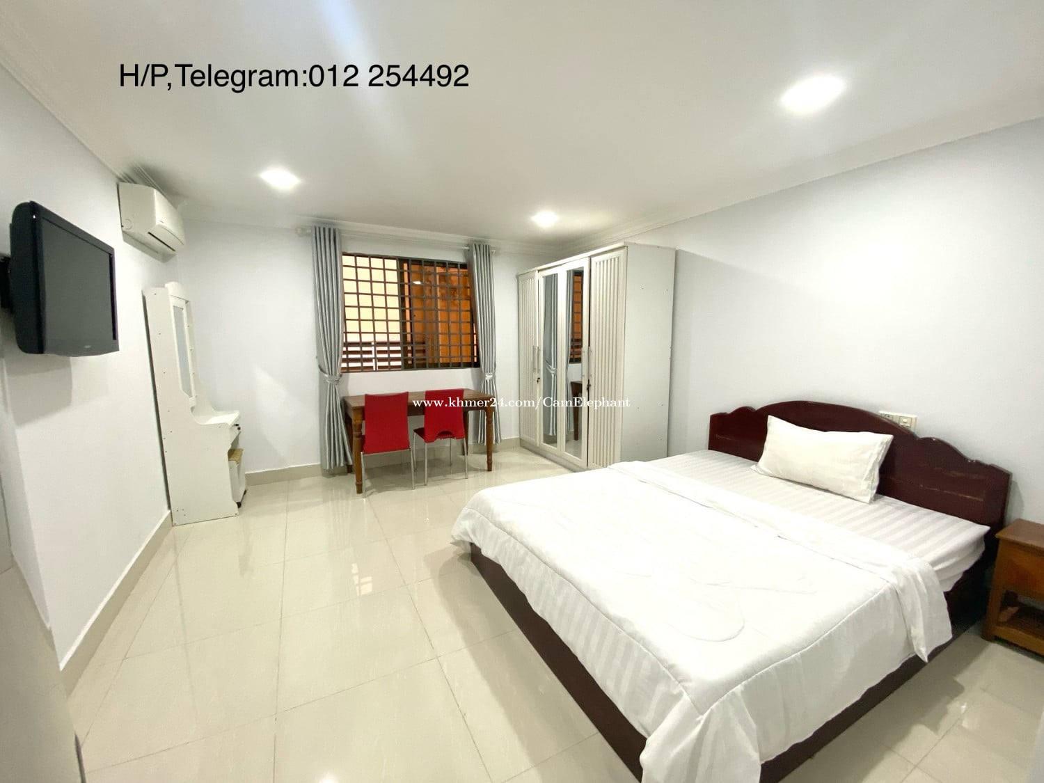 โ ๐กProperty ID:S00588S Rental Price:$250(free:wifi,cable TV,garbage collection,parkingโฆ) Location:BKK1 (near Phnom Penh Tower,Gold Tower and Independence Monument) -1 cute bedroom:bed,mattress,air-conditioner -TV -clean bathroom:glass shower and water heater -Western kitchen:gas stove,fridge,washing machine -elevator -parking lot ***H/P:( 855)016926xxxClick To Call/012254xxxClick To Call ***( 855)012254xxxClick To Call (Telegram,WhatsApp) ***E-mail:sop*************@gmail.comClick To Sent Email www.camelephantrealty.com Facebook page: Cam Elephant Realty