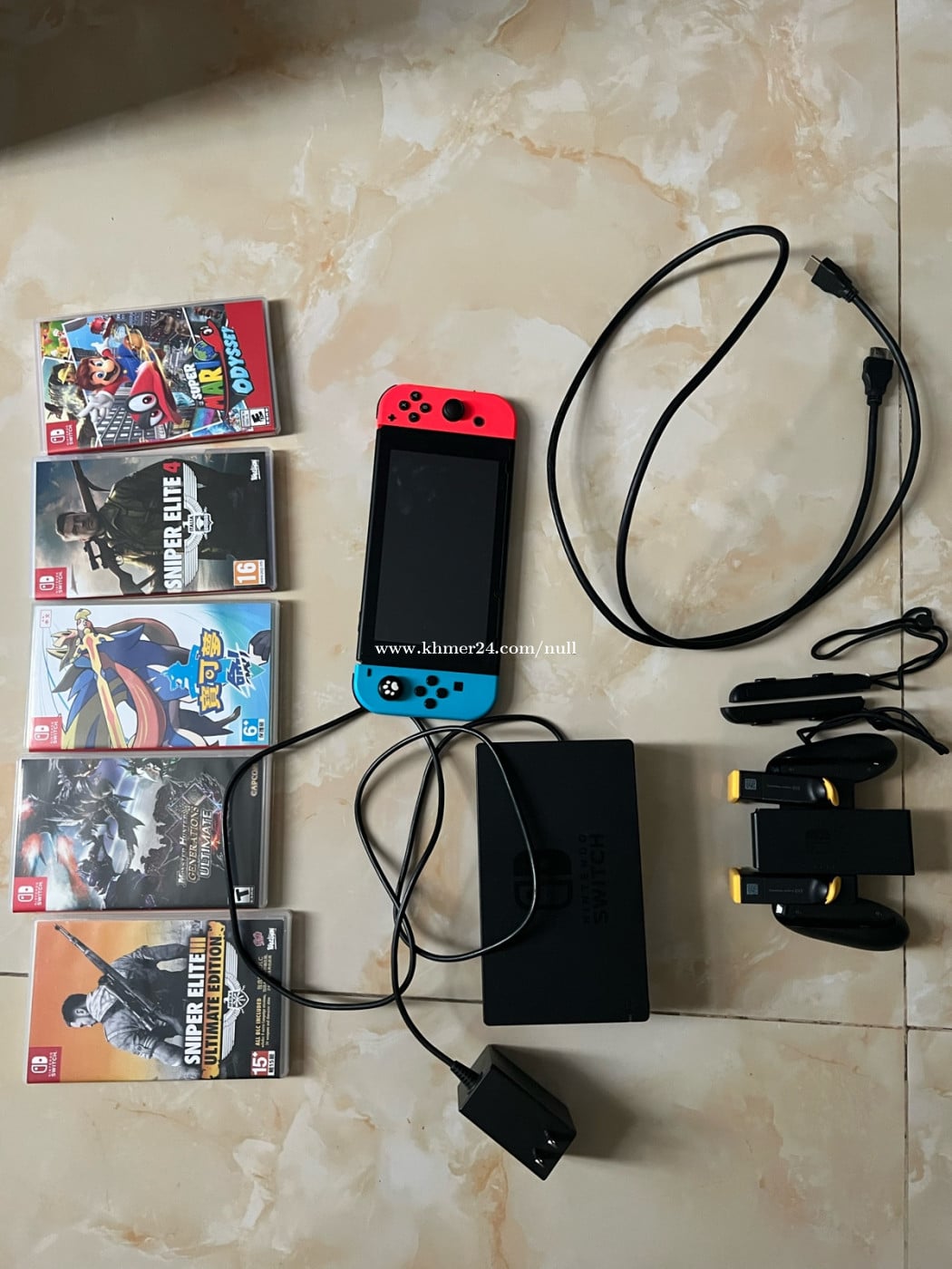 A first-generation Nintendo Switch console, undamaged. Includes five game cartridges and a digital account (with multiple games).