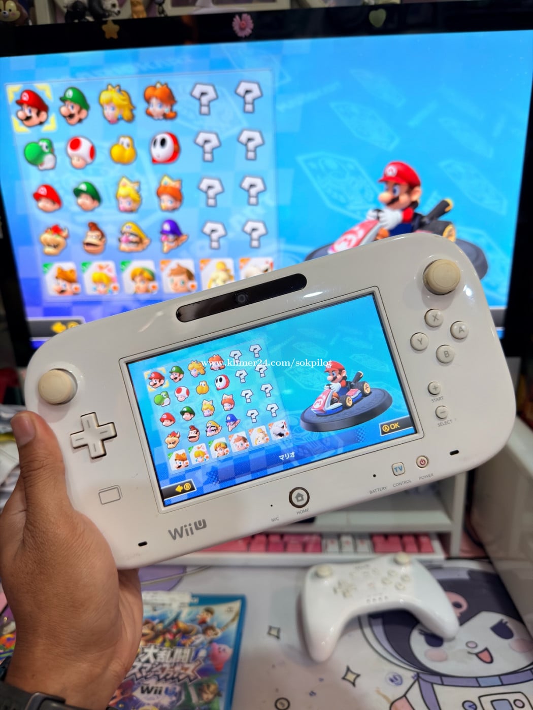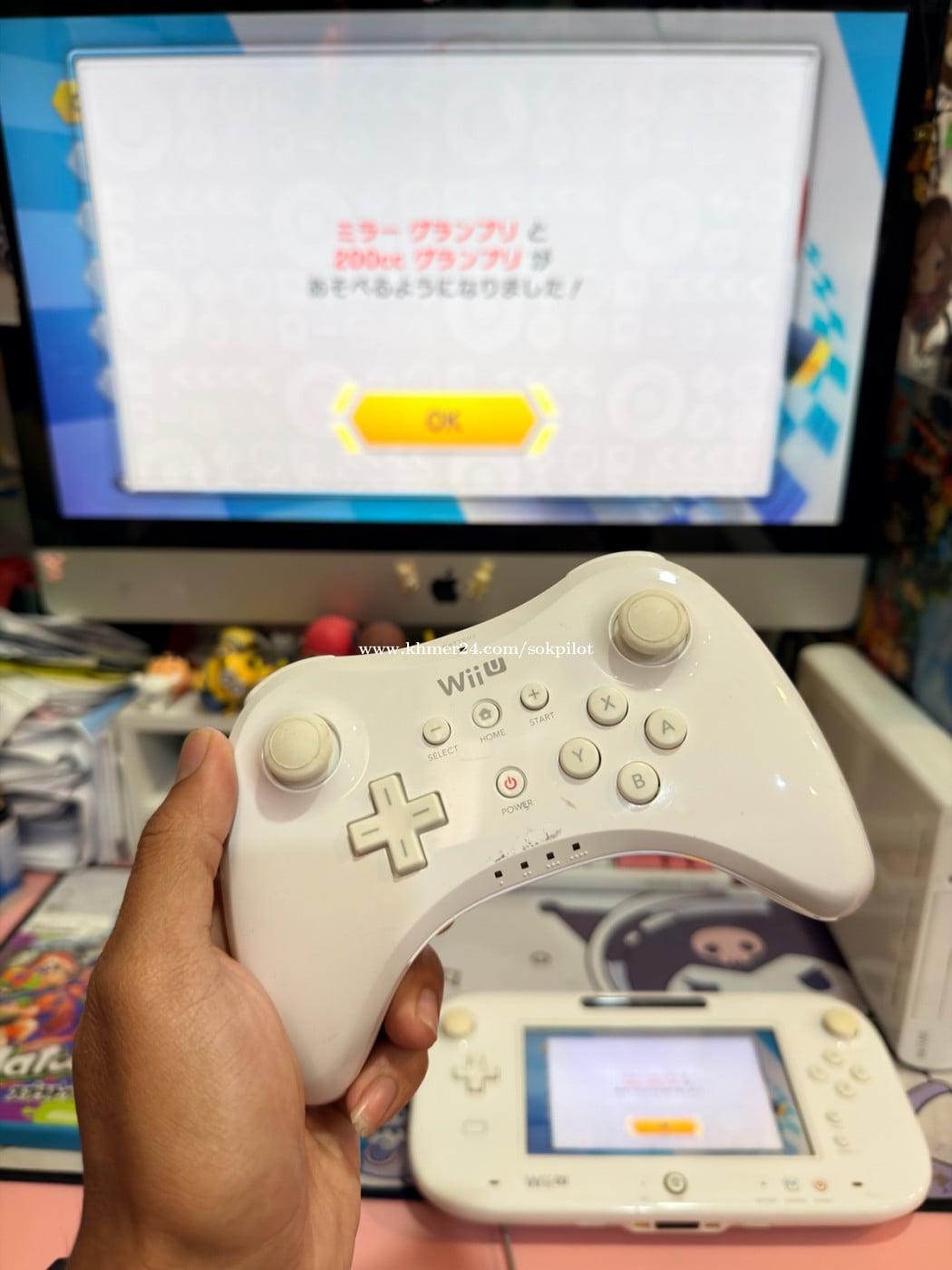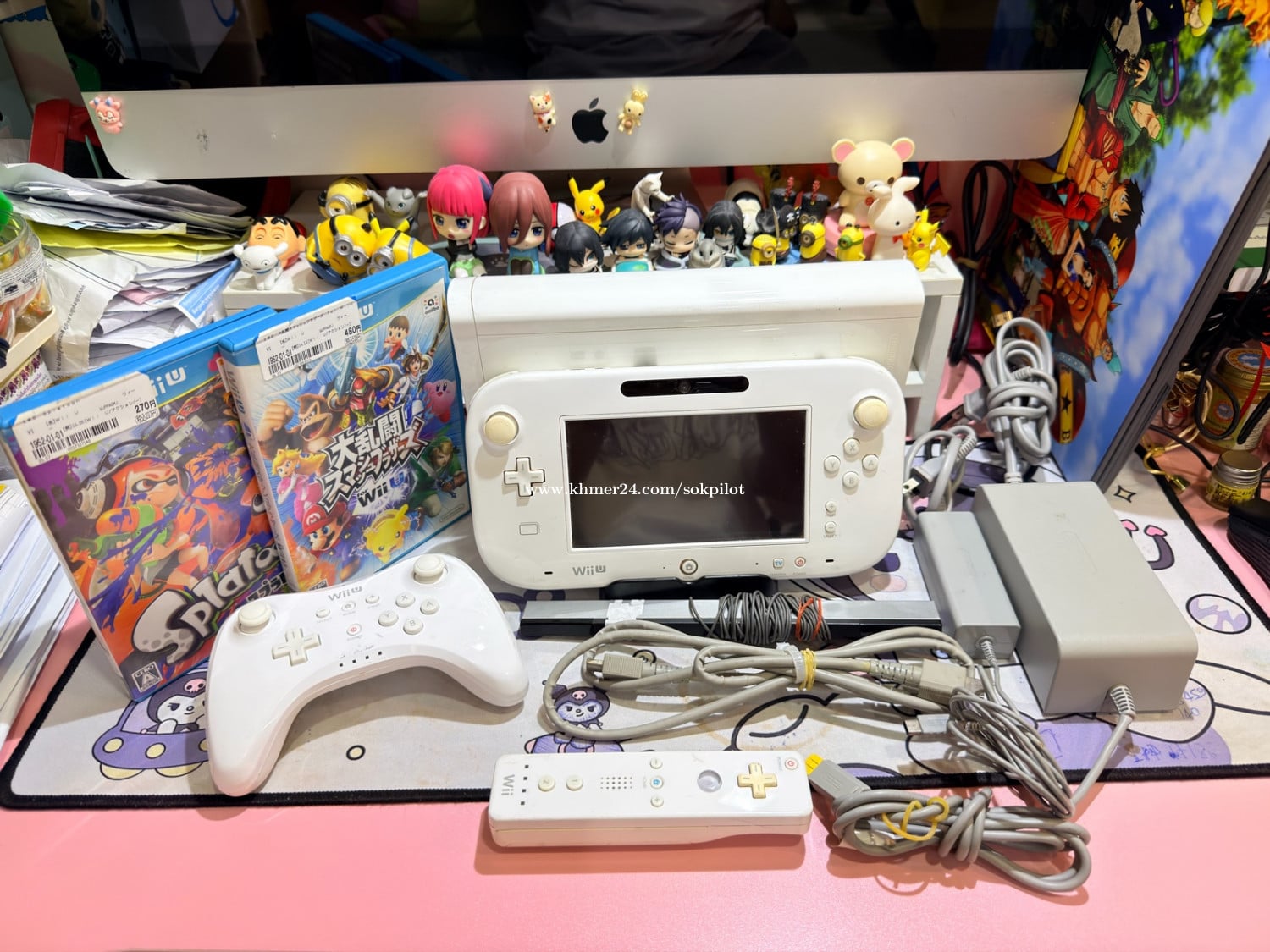 WiiU ម៉ាស៊ីនមកពីជប៉ុនម៉ាស៊ីននៅដំណើរការទាំងអស់មានហ្គេមនៅក្នុងមួយ មានgame dis 2 មានcontroller ភ្លើង220v Full set